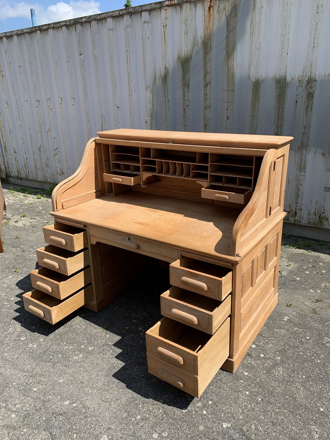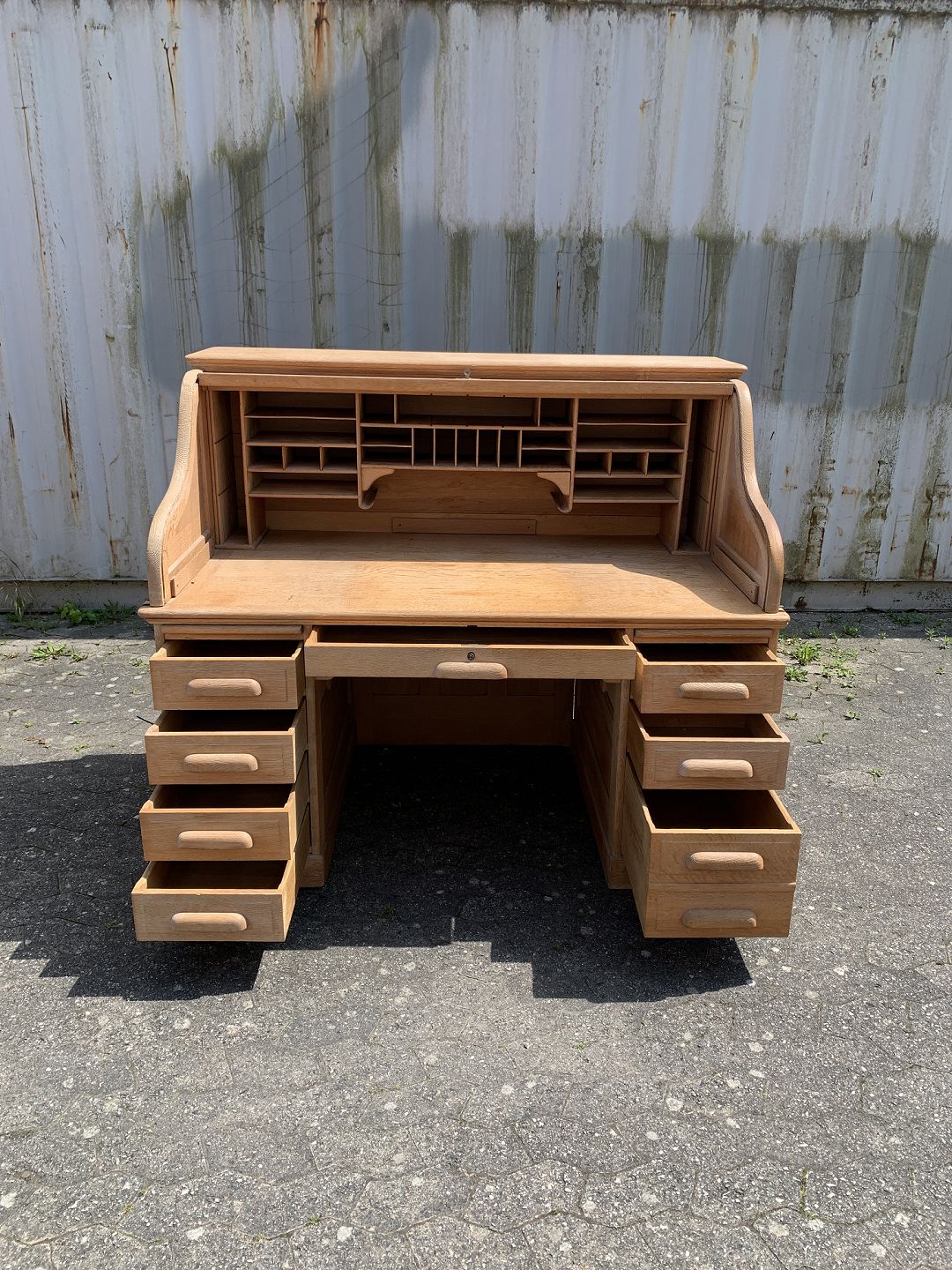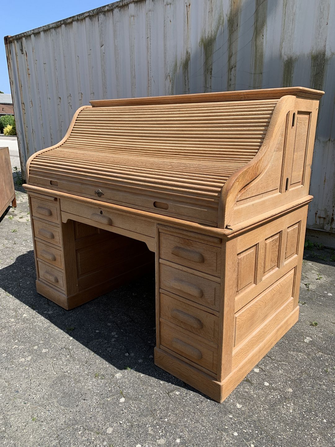 Amrikansk skrivebord i massivt egetræ, fra 1920erne. Det har patina. Højde 130cm Bordpladehøjde 77cm Højde fra gulv til underkant 62cm Bredde 150cm Dybde 80cm Emne nummer: 76878