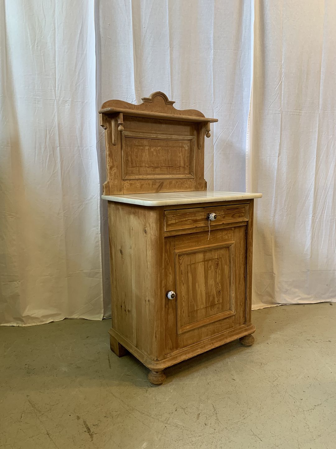 Servante i massivt fyrretræ med marmorplade, fra 1910erne.