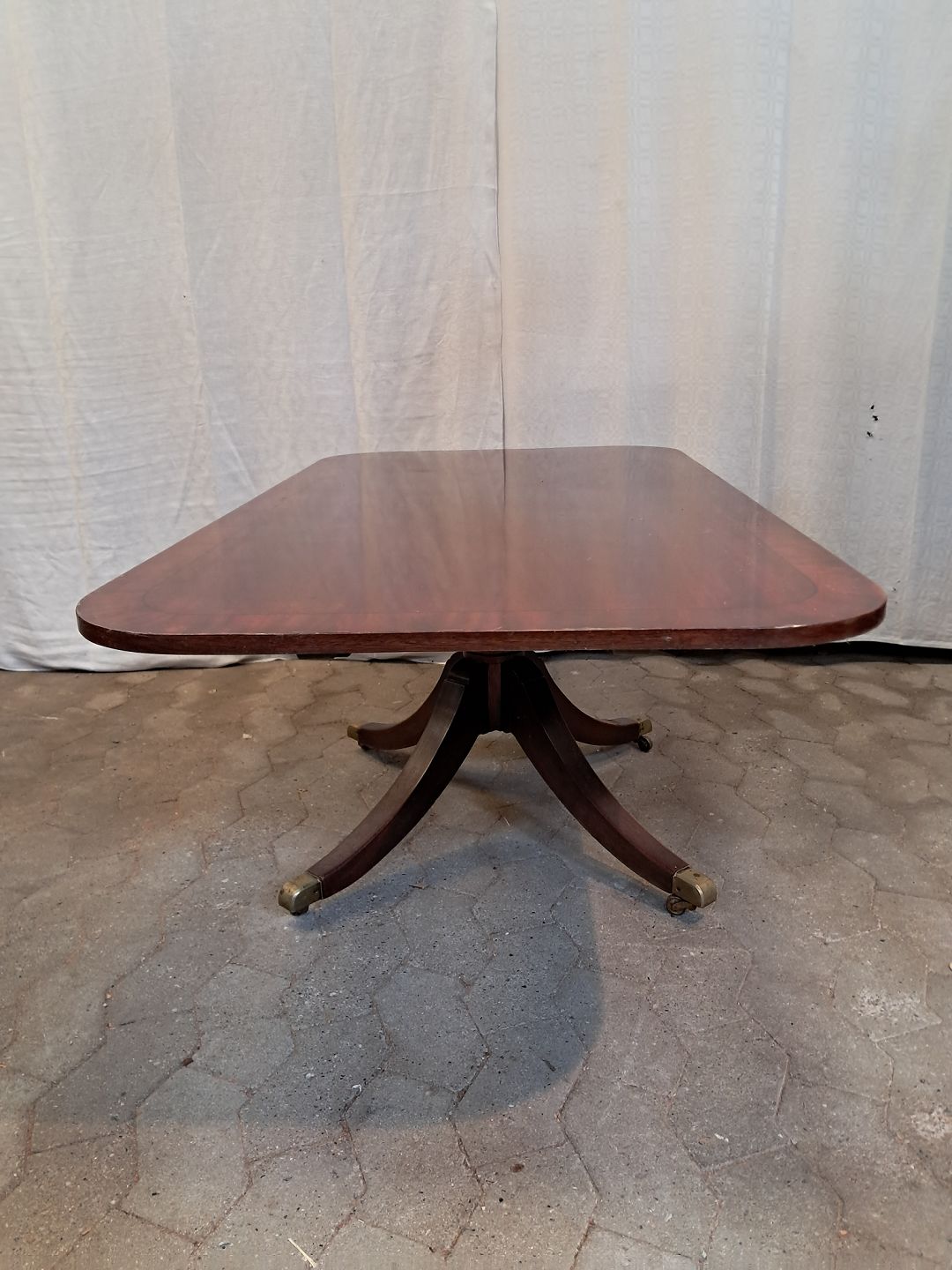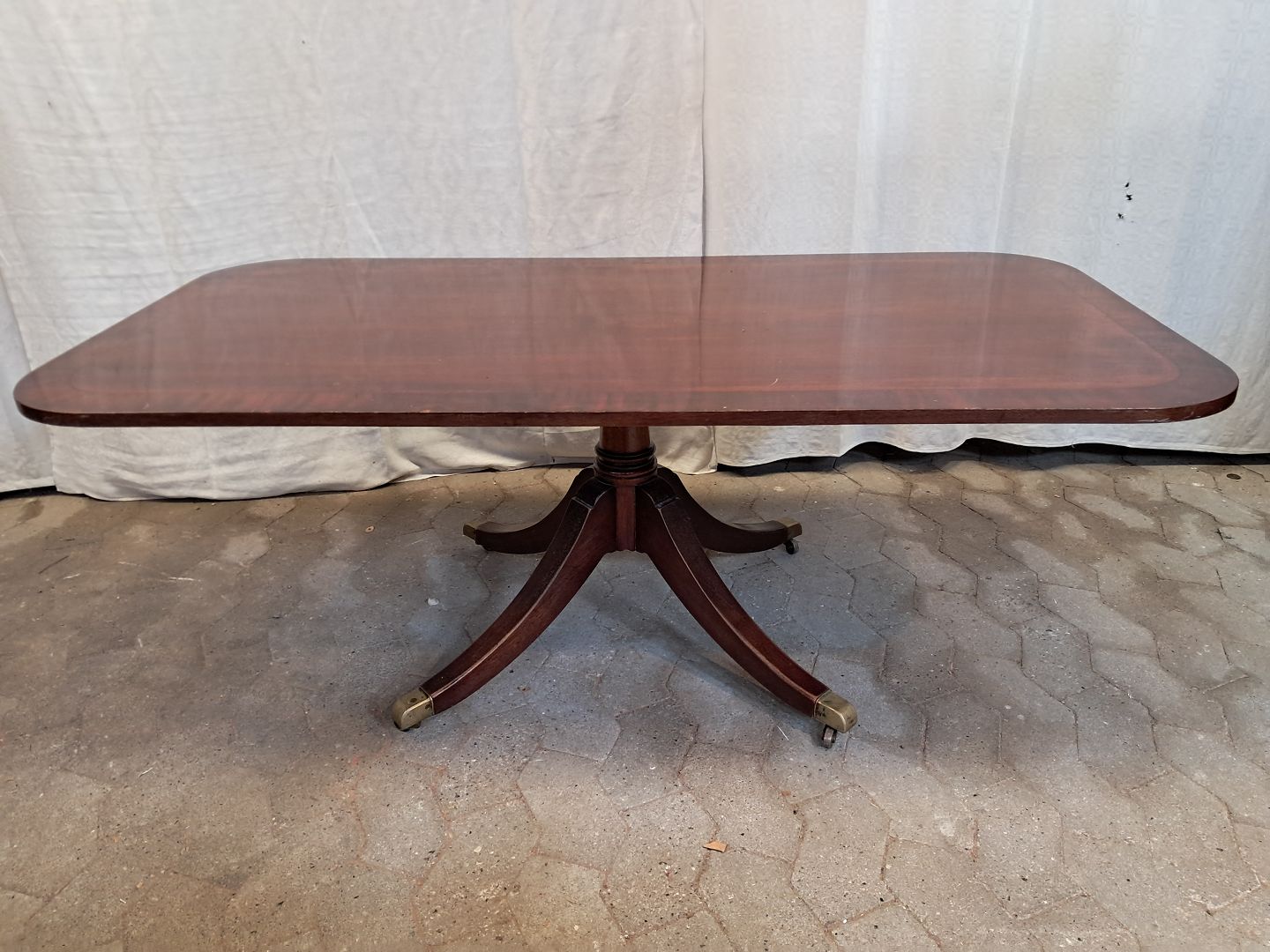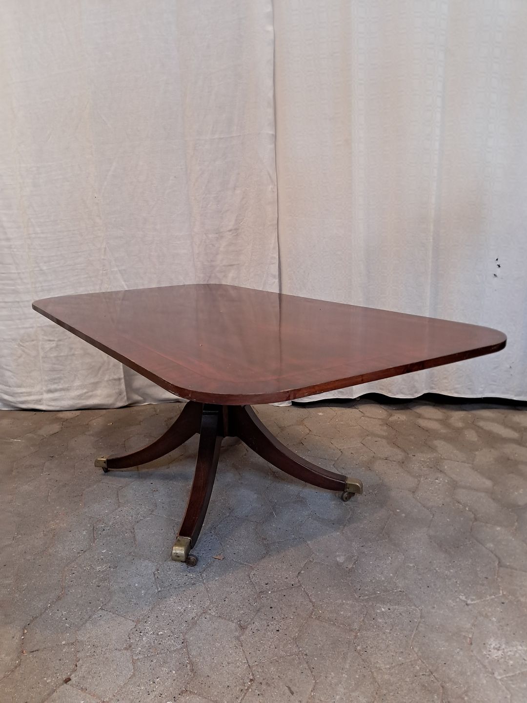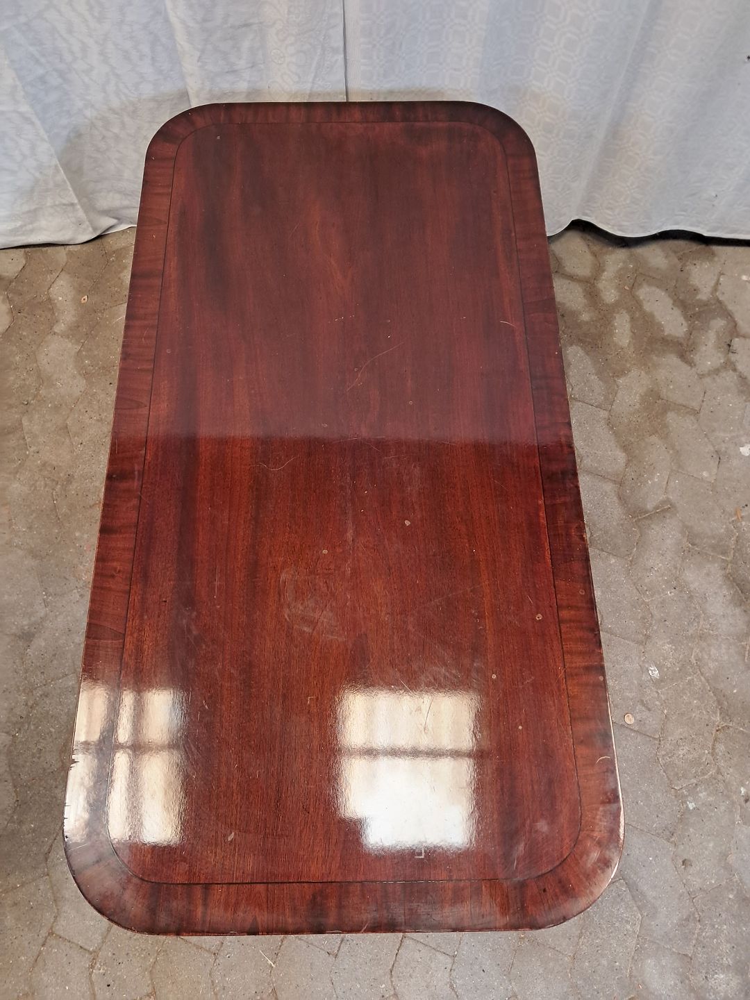 Sofabord i fineret mahogni, fra 1980erne. Det har brugsspor. Højde 54cm Bredde 75cm Længde 146cm Emne nummer: 91857