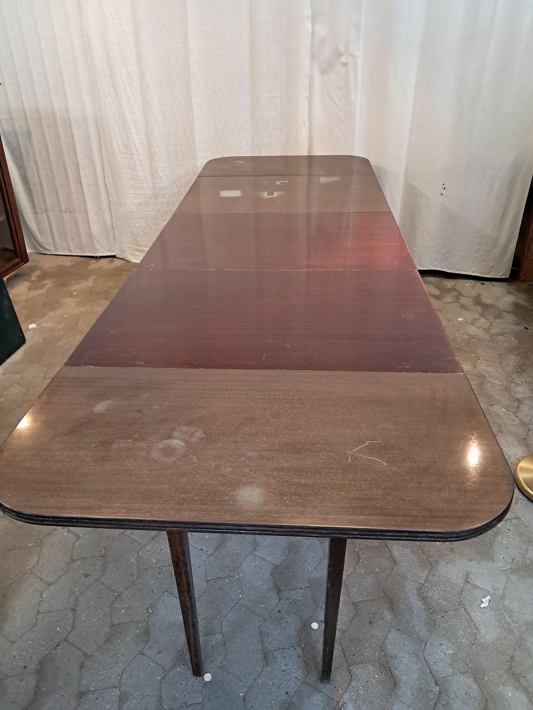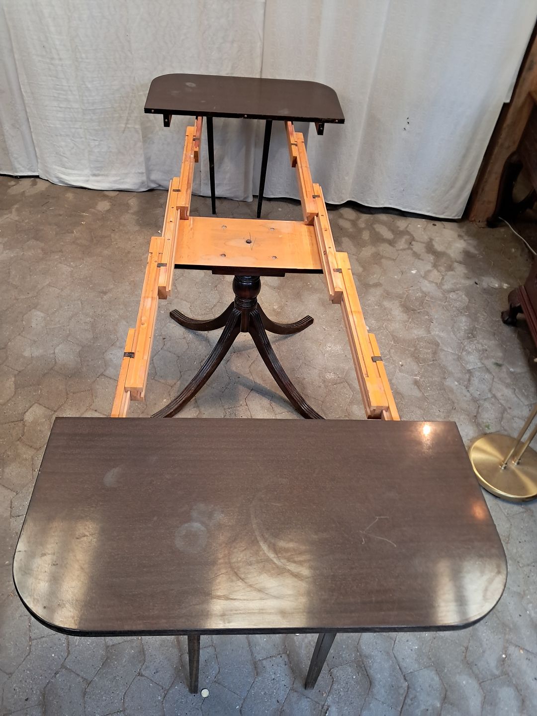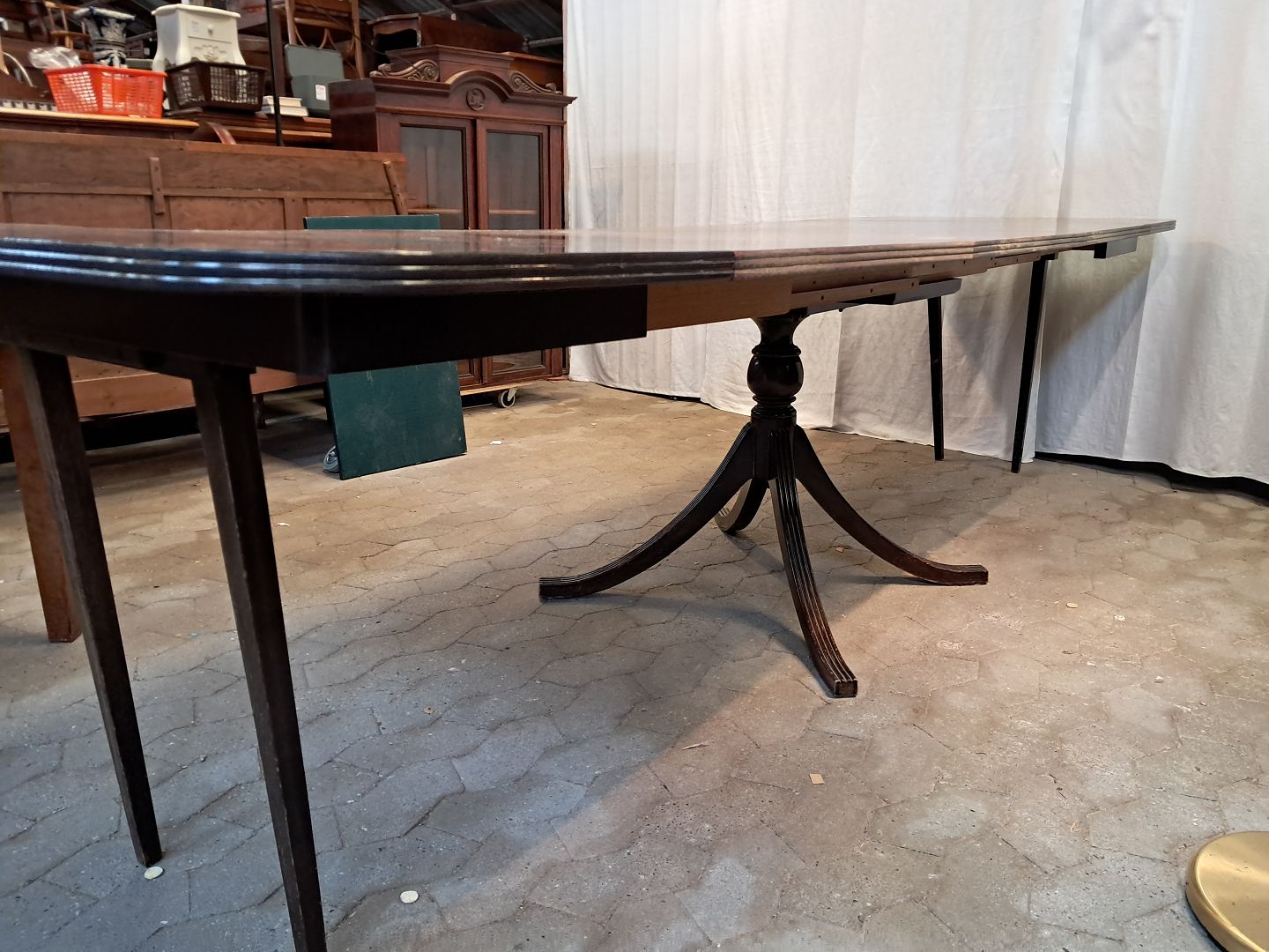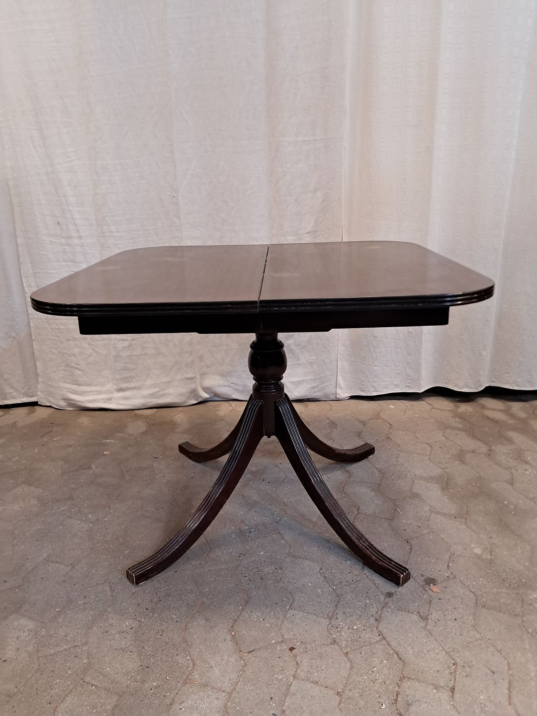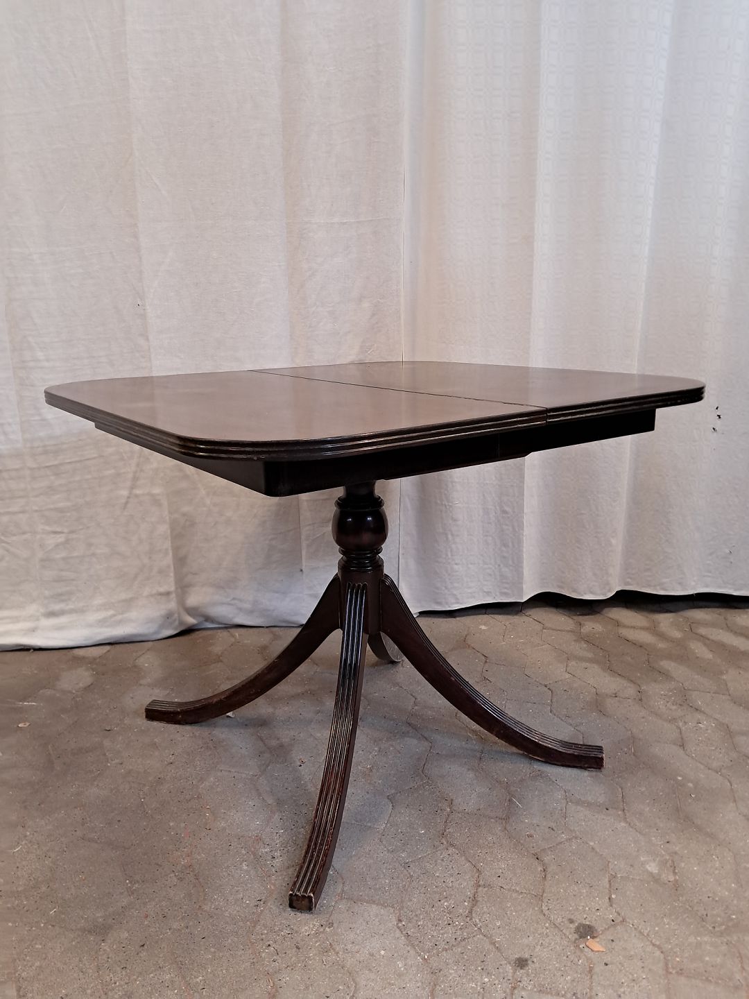 Spisebord i fineret mahogni med 3 tillægsplader.
