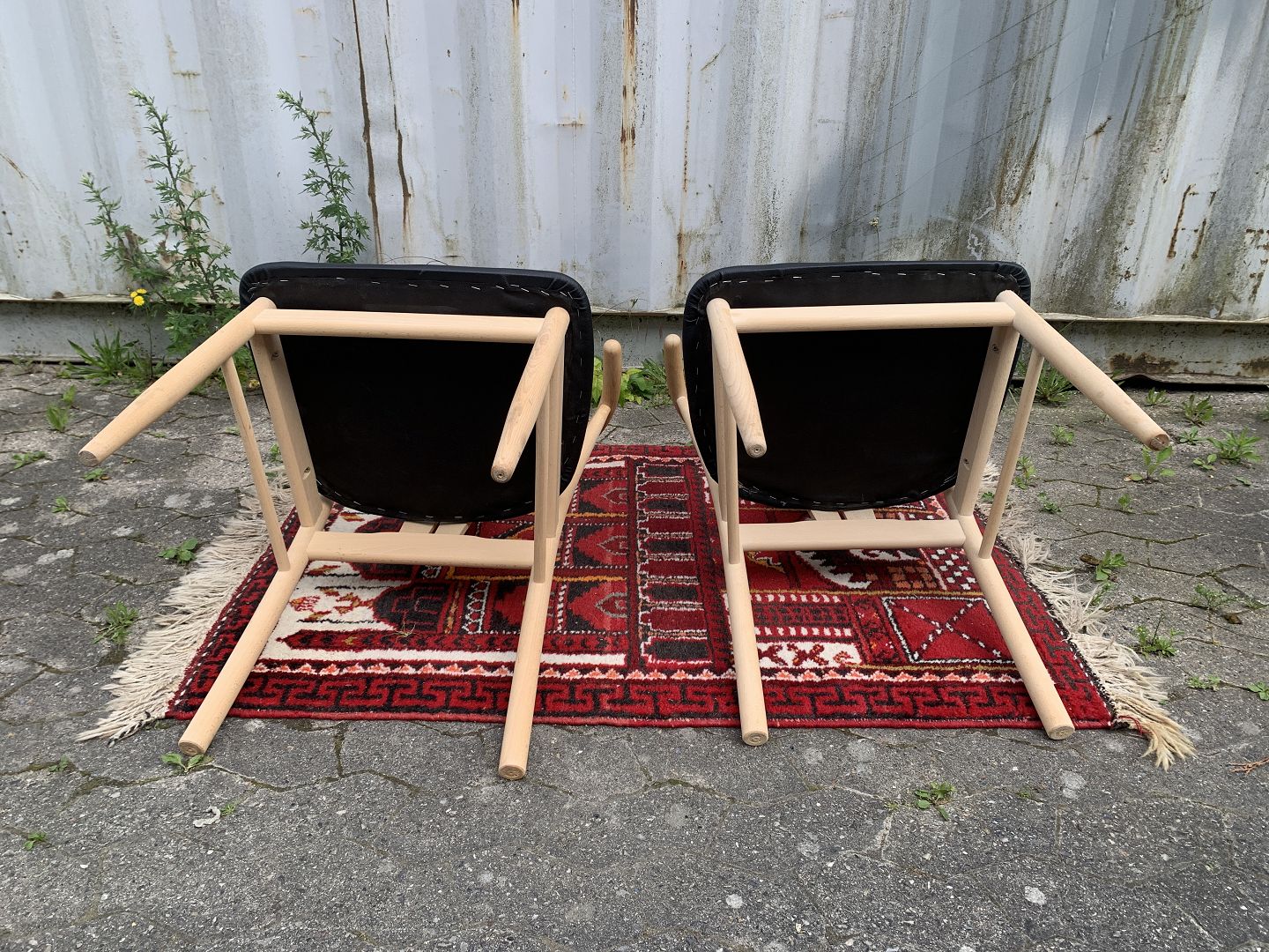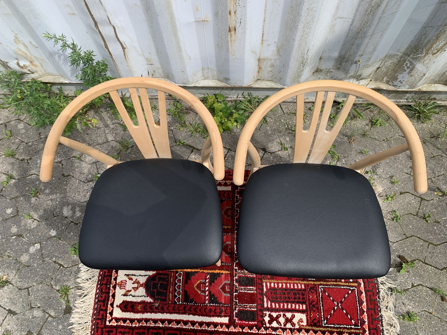 2 stole i massivt bøgetræ med kunstlæder betræk, fra 2010erne.