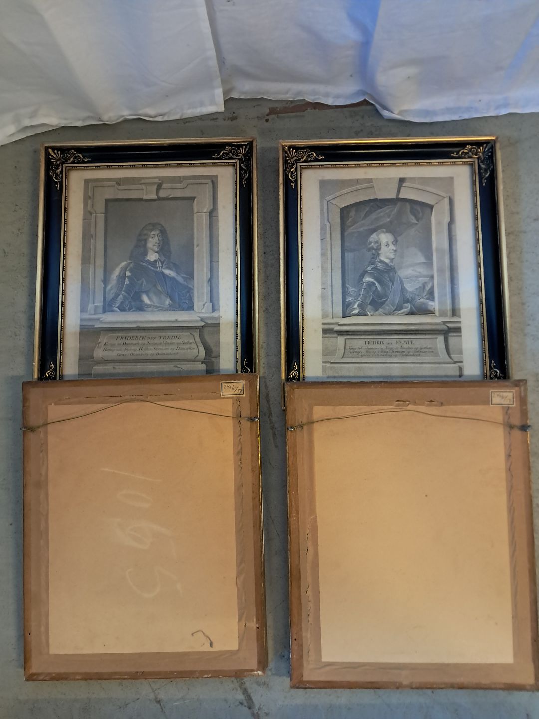 6 Billeder i guldmalet rammer af danske konger, fra 1920erne.