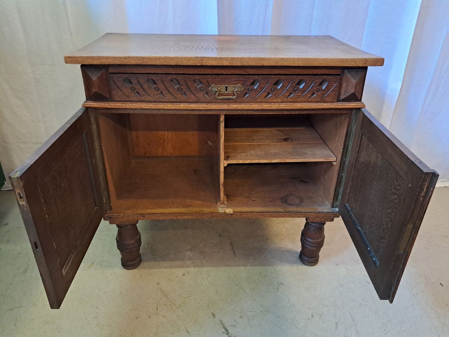 Skab i massivt egetræ, fra 1910erne.