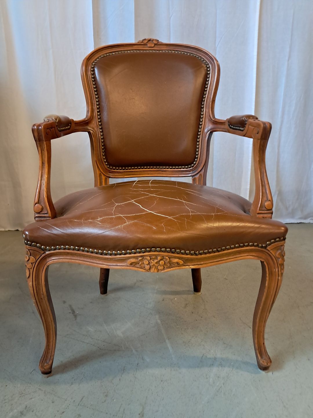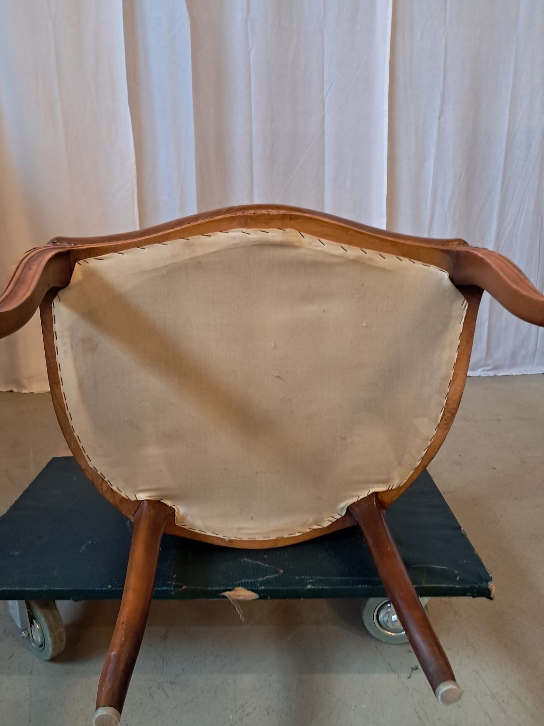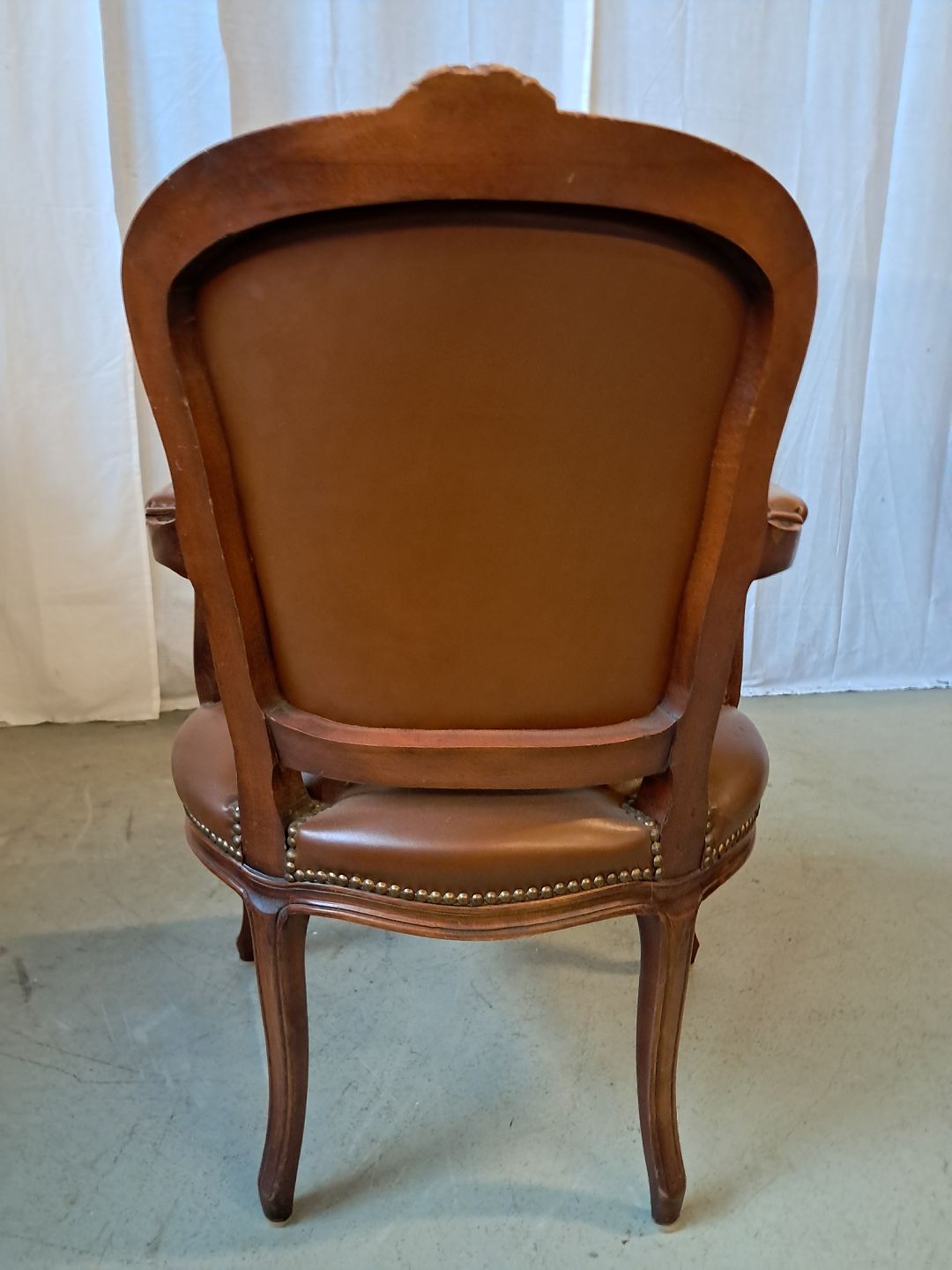 Rokokostol i massivt bøgetræ med kunstlæder, fra 1980erne. Den har brugsspor. Ryghøjde 88cm Sædehøjde 41cm Emne nummer: 76996