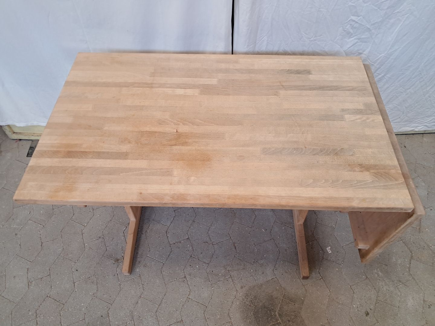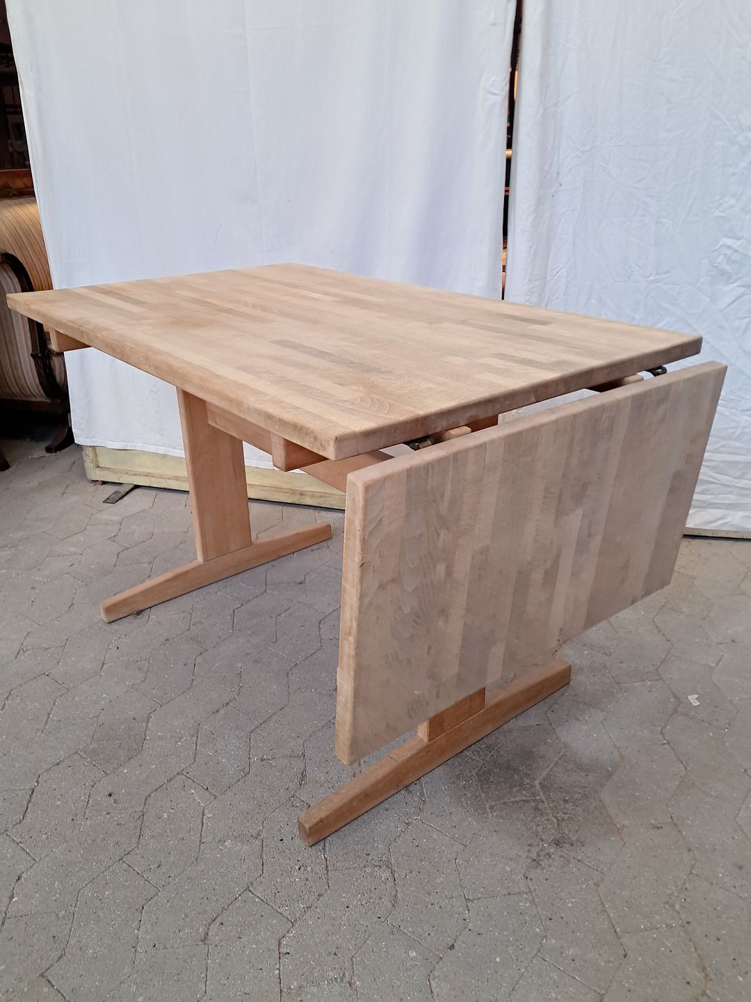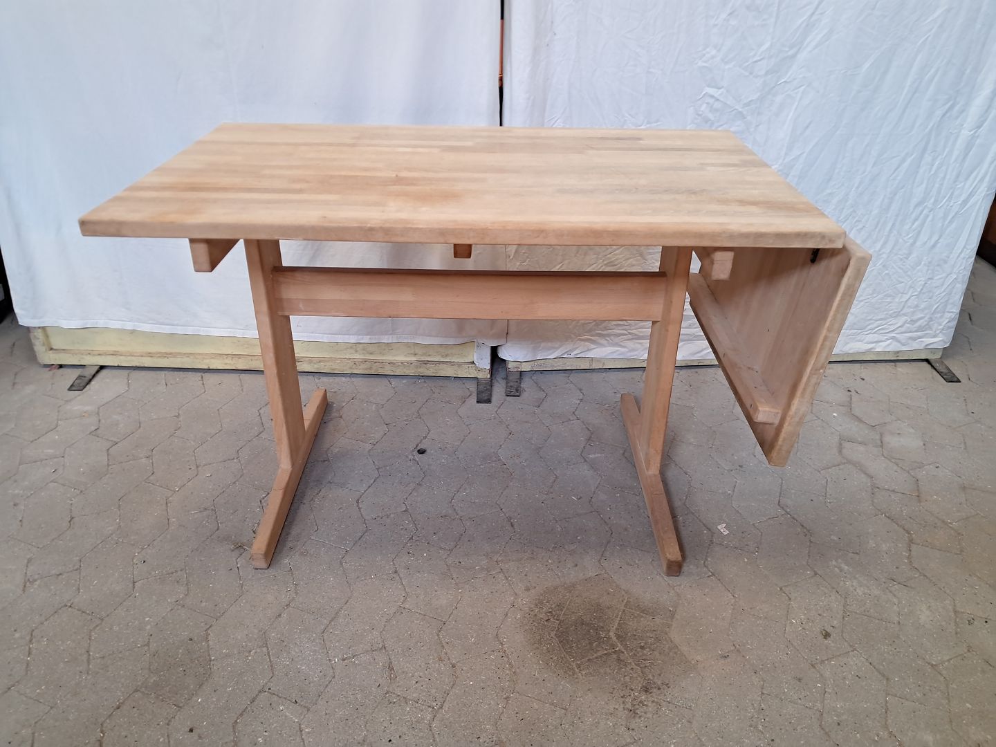Bord i massivt bøgetræ, fra 1990erne. Det har brugsspor. Højde 73cm Bredde 70cm Længde 115cm Længde med klap 155cm Emne nummer: 91894