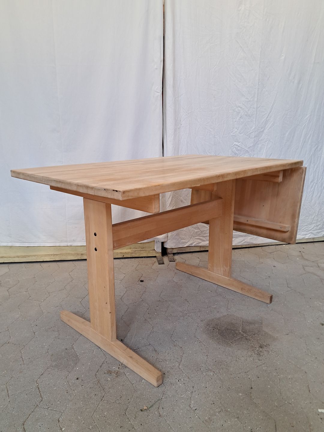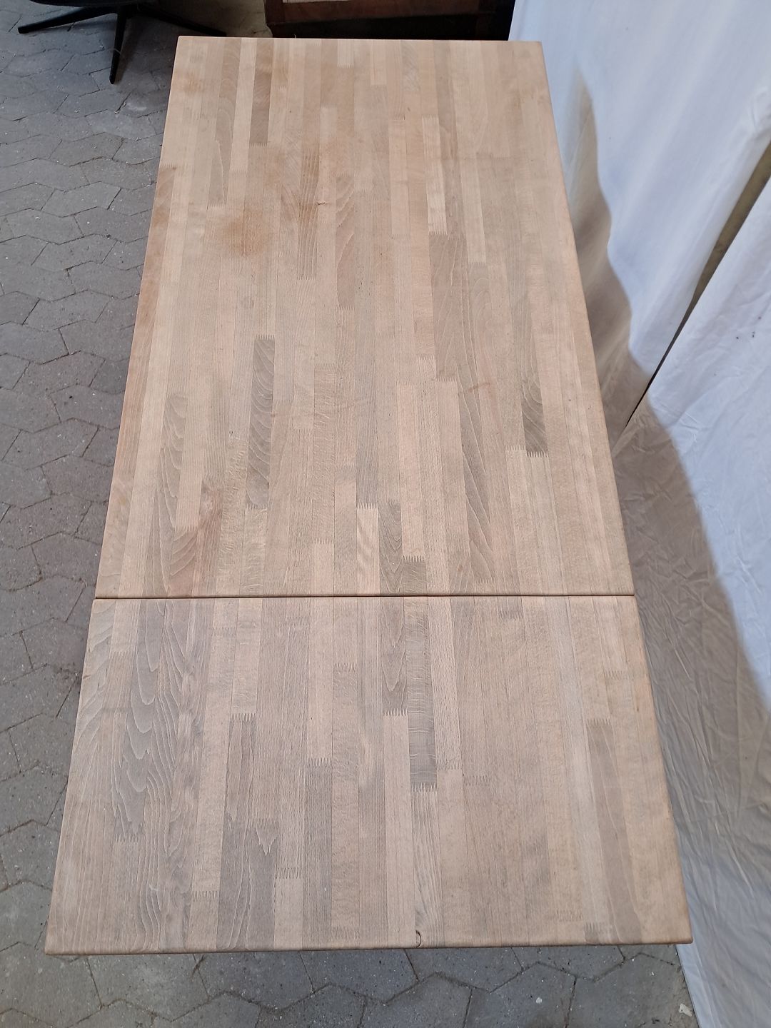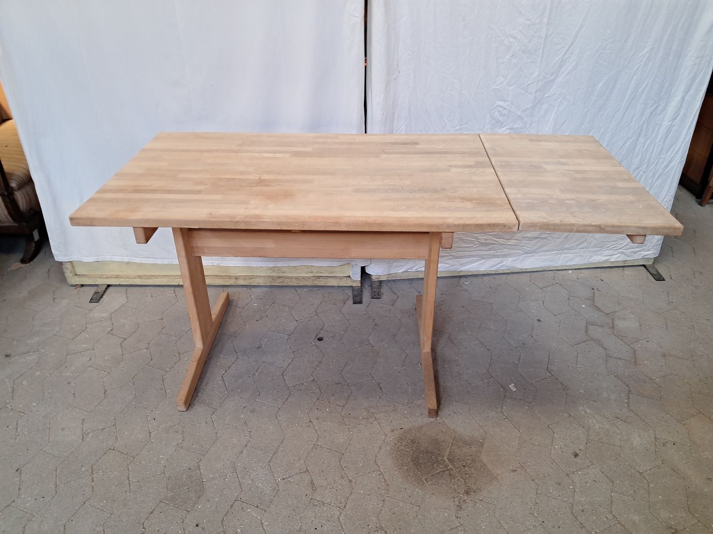 Bord i massivt bøgetræ, fra 1990erne. Det har brugsspor. Højde 73cm Bredde 70cm Længde 115cm Længde med klap 155cm Emne nummer: 91894