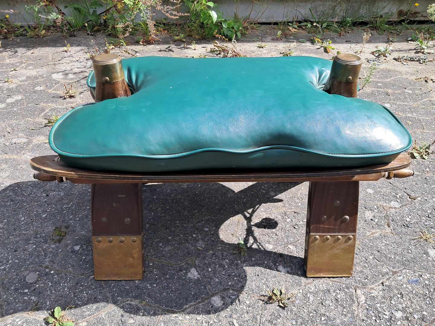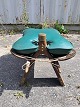 Skammel med læderhynde, fra 1980erne. Den har brugsspor. Højde 39cm Bredde 40cm Længde 68cm Sædehøjde 33cm Emne nummer: 77051