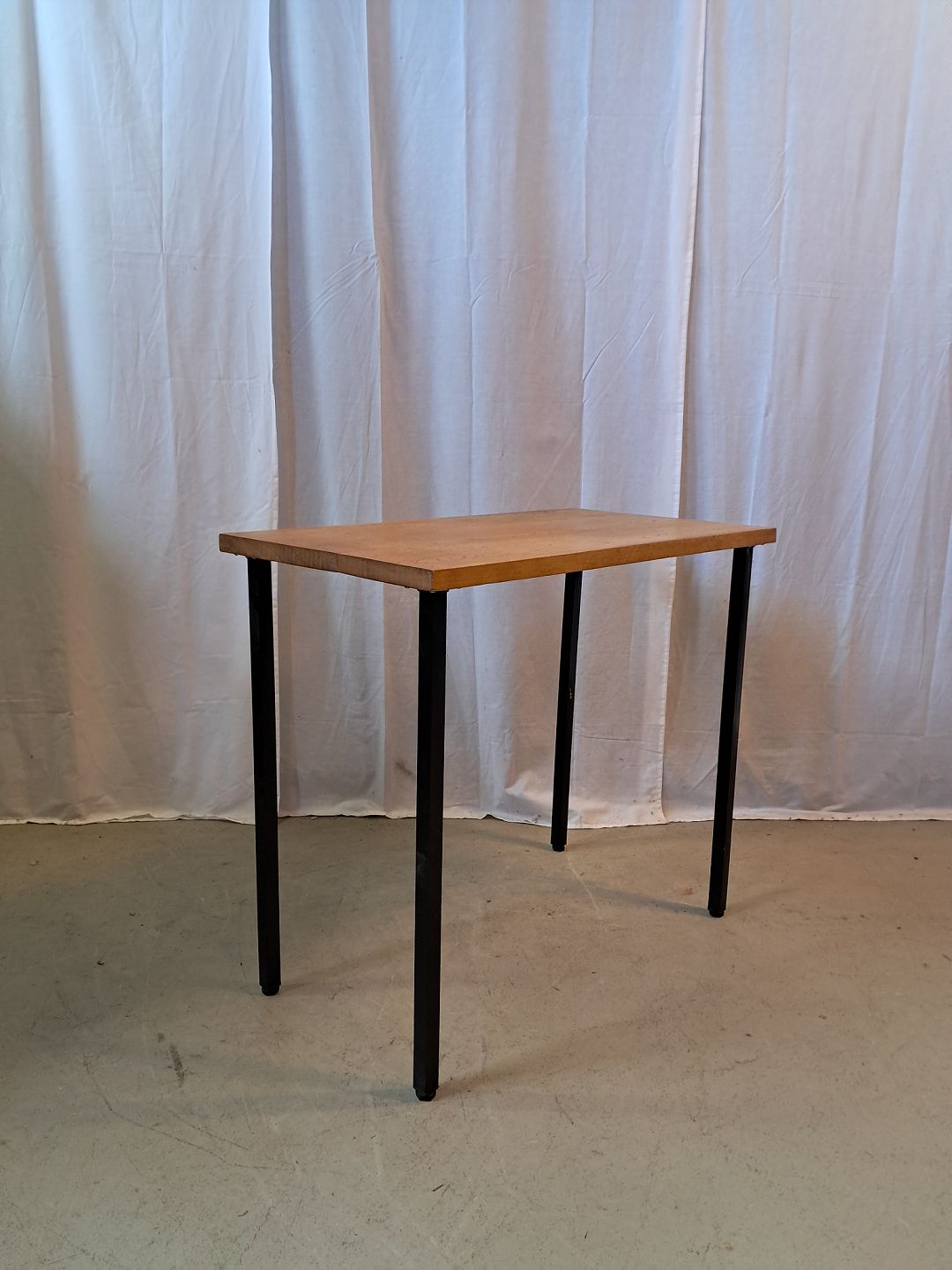 Bord i massivt egetræ med metalben, fra 1990erne.