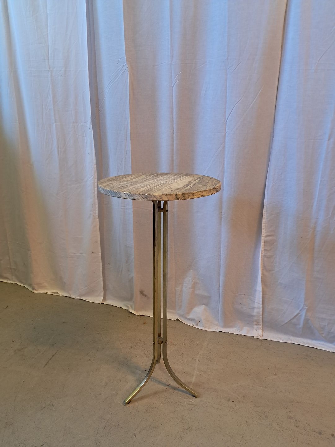 Bord med metalstel og marmorplade, fra 1980erne. Det har brugsspor. Højde 82cm Diameter 41cm Emne nummer: 77078