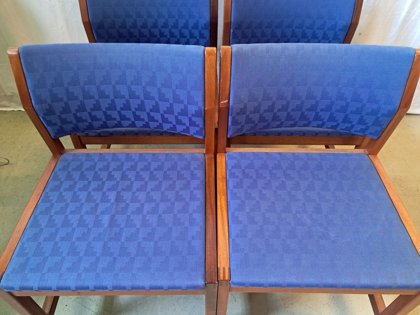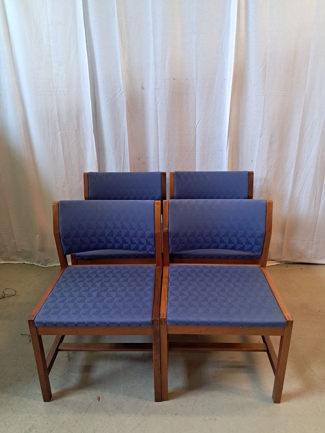 4 Stole i massivt mahogni, fra 1980erne. De har brugsspor. Ryghøjde 77cm Sædehøjde 44cm Emne nummer: 77108