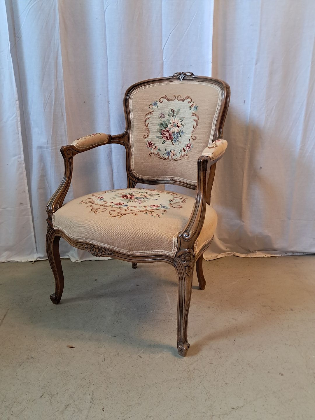 Armstol i massivt bøgetræ, fra 1950erne. Den har brugsspor. Ryghøjde 89cm Sædehøjde 44cm Emne nummer: 77111