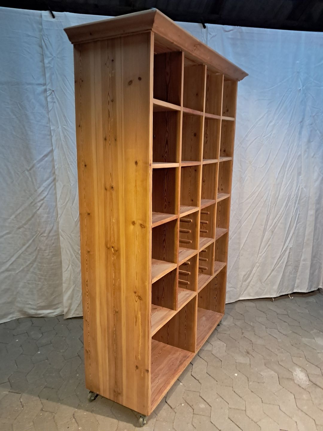 Reol i massivt fyrretræ, fra 1930erne. Den har brugsspor. Højde 198cm Bredde 137cm Dybde 49cm Hylderum : Højde 26cm Bredde 28cm Nederste hylderum : Højde 42cm Bredde 58cm Se emne nr.91897 Emne nummer: 91898