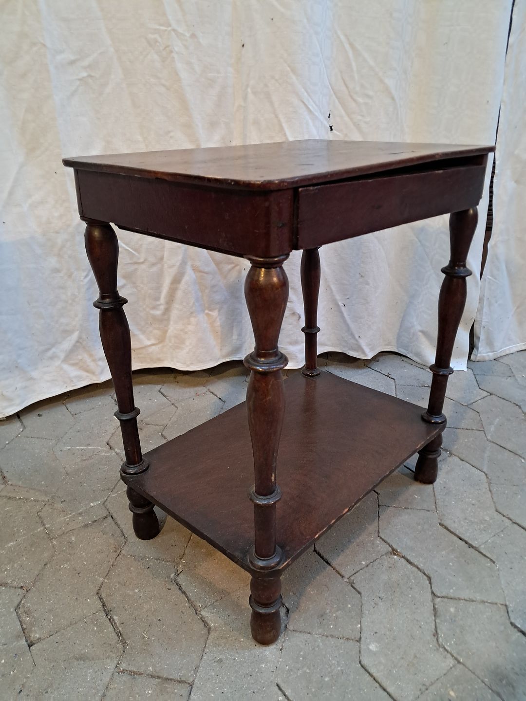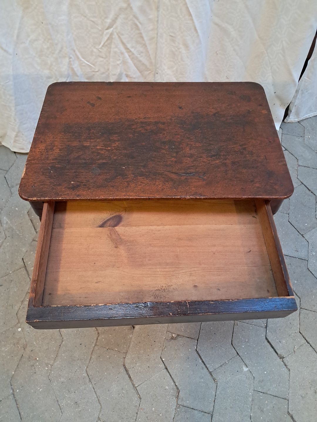Sidebord i massivt fyrretræ og fineret bøgetræ, fra 1900erne. Det har brugsspor. Højde 56cm Bredde 50cm Dybde 33cm Emne nummer: 91932