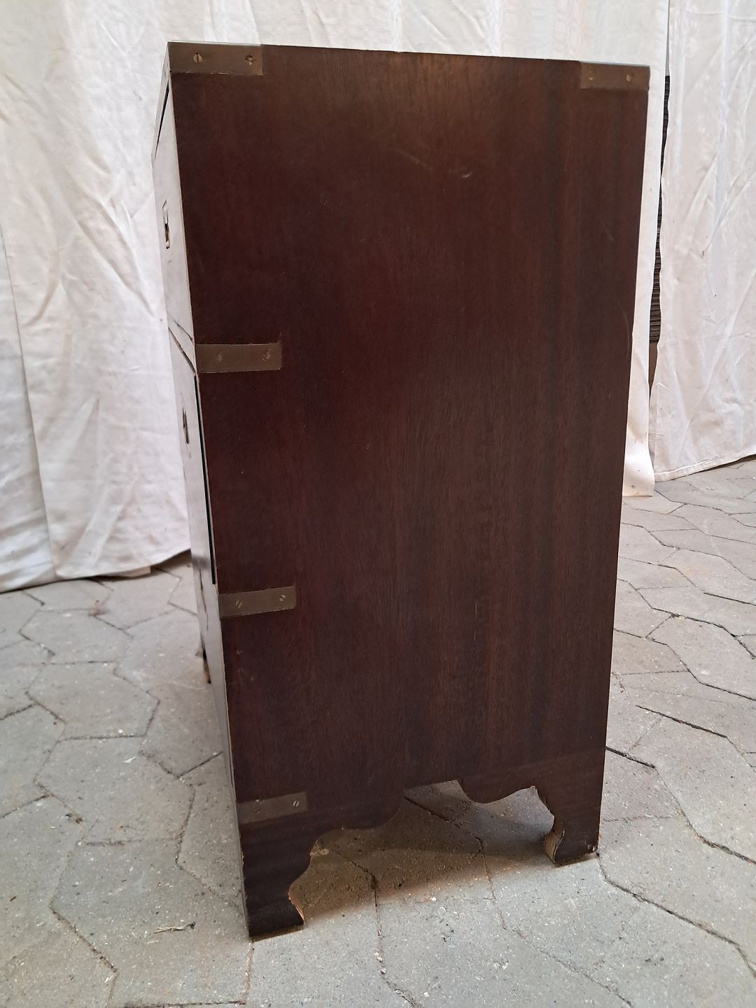 Military kommode i fineret mahogni, fra 1980erne. Den har brugsspor. Højde 60cm Bredde 45cm Dybde 30cm Emne nummer: 91943