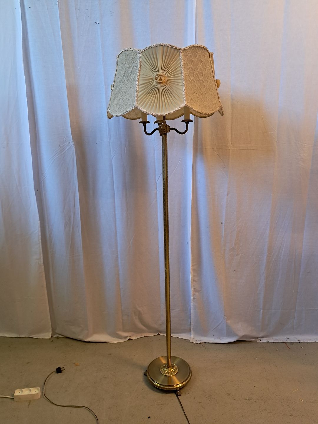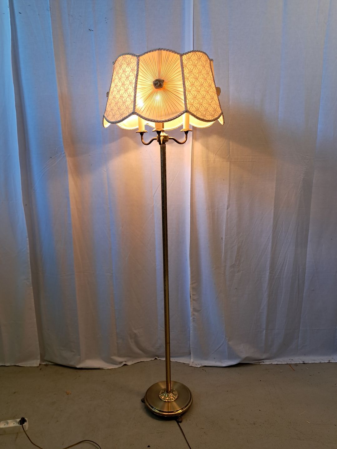 Gulvlampe i metal med 3 pære og skærm, fra 1980erne.