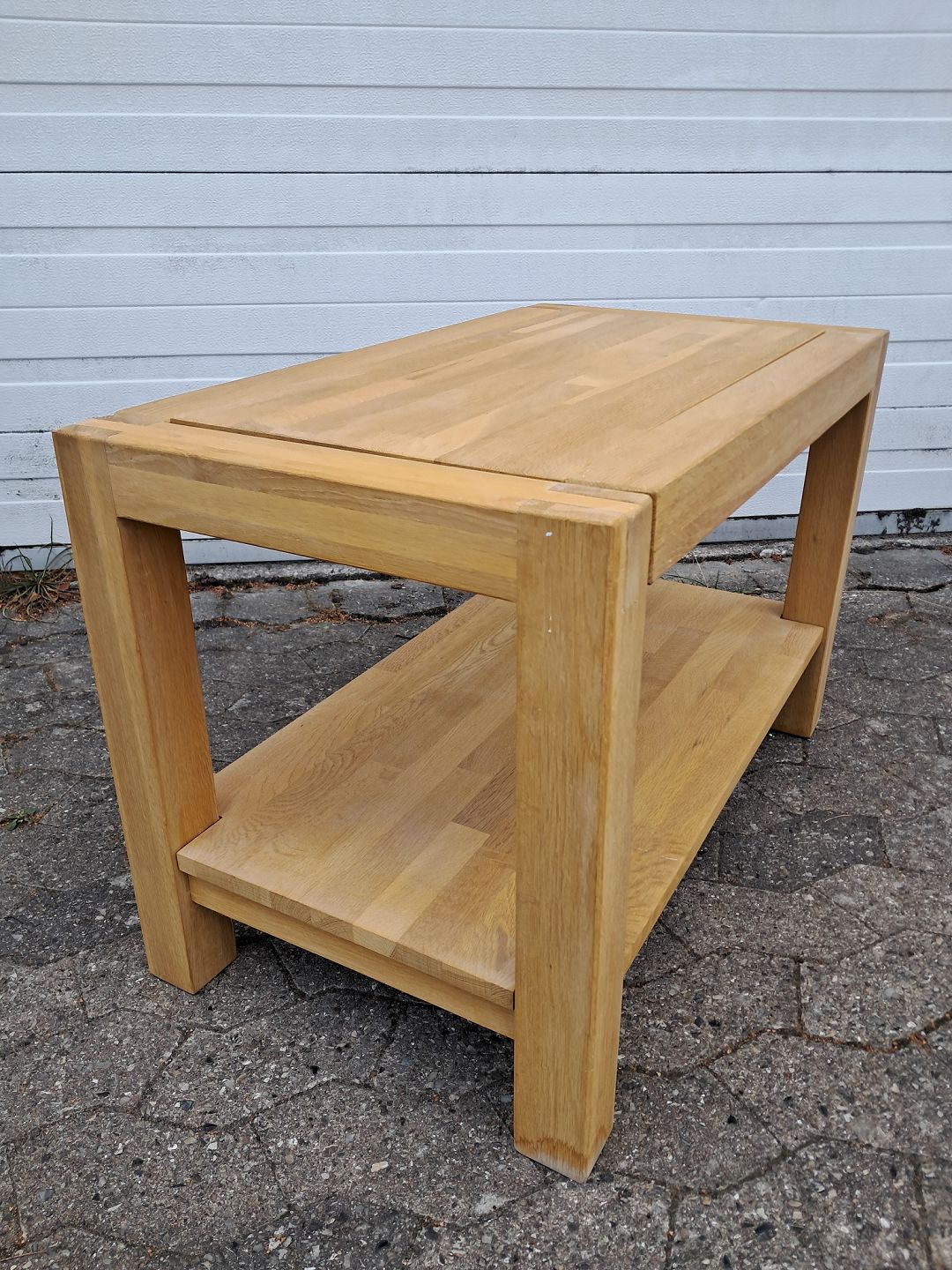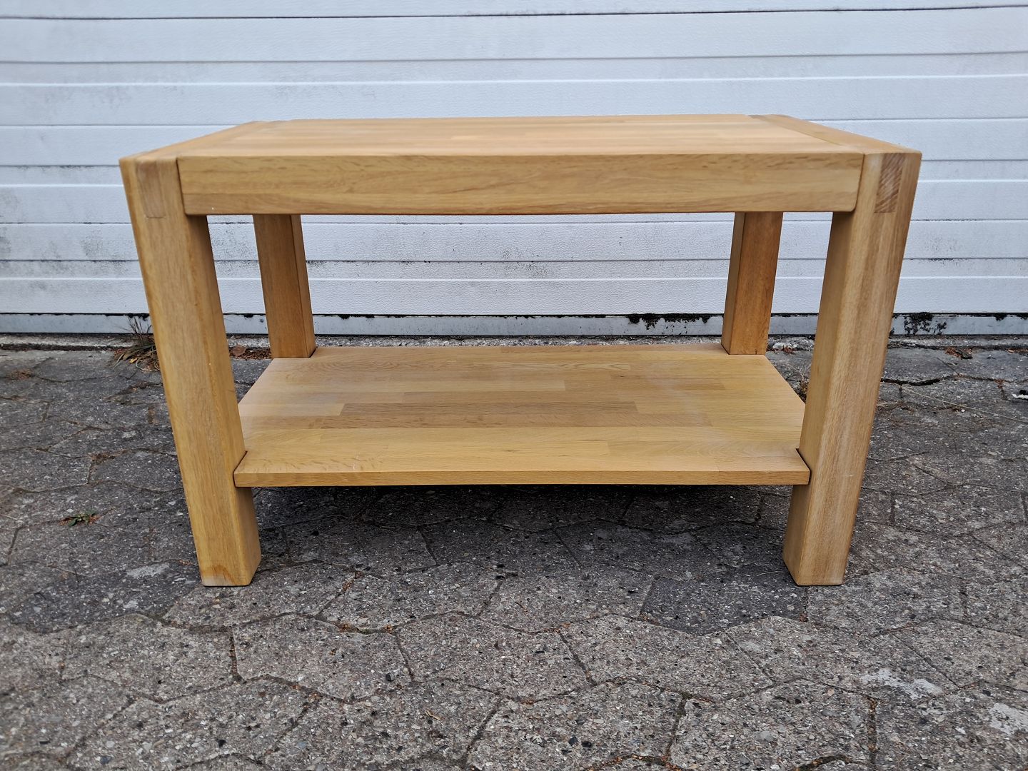 Sofabord i massivt egetræ, fra 2000erne. Det har små brugsspor. Højde 52cm Bredde 45cm Længde 80cm Emne nummer: 77239