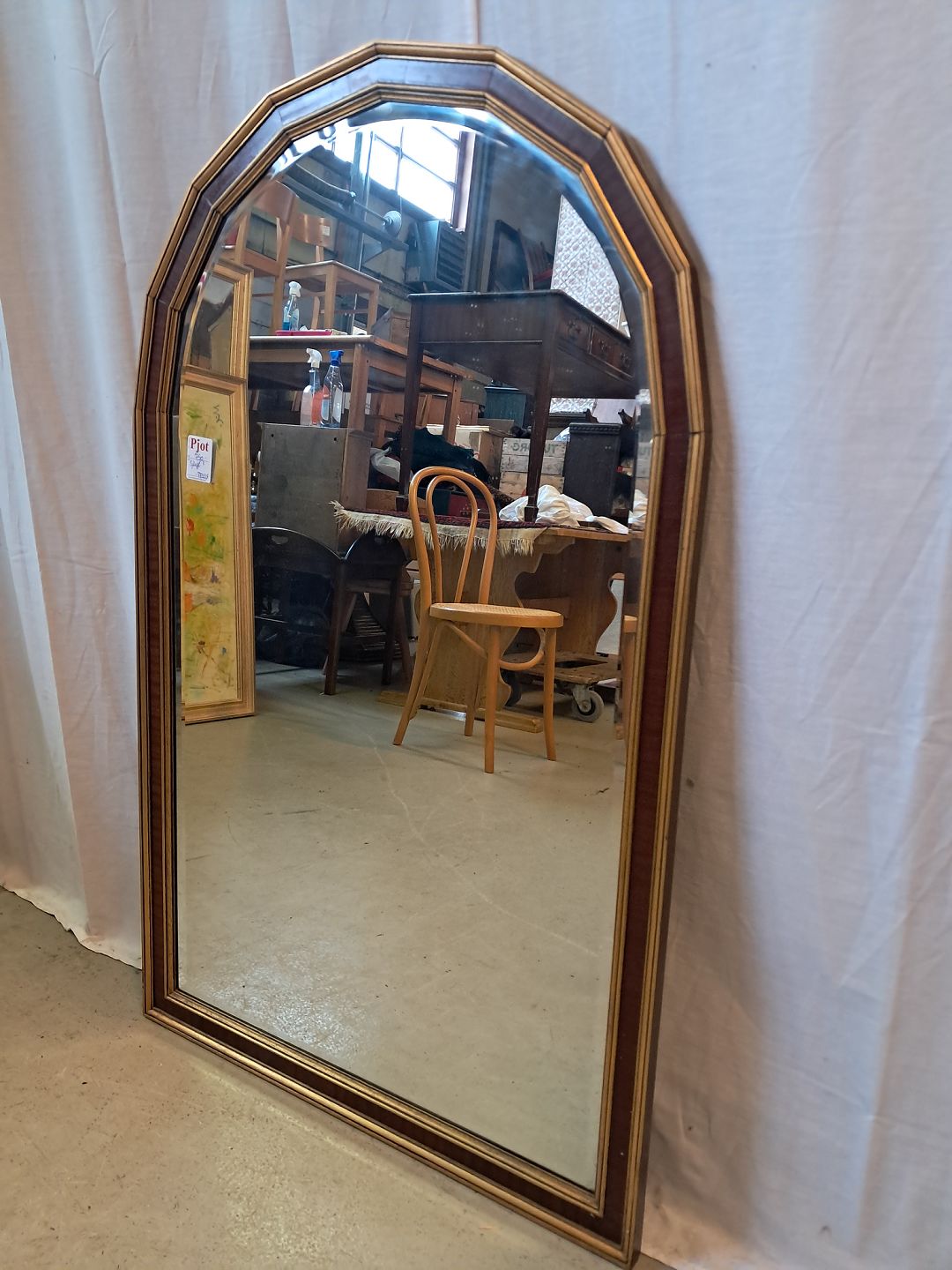Facetslebet spejl i fineret mahogni og guldmalet ramme, fra 1980erne. Det har brugsspor. Højde 113cm Bredde 70cm Emne nummer: 77335