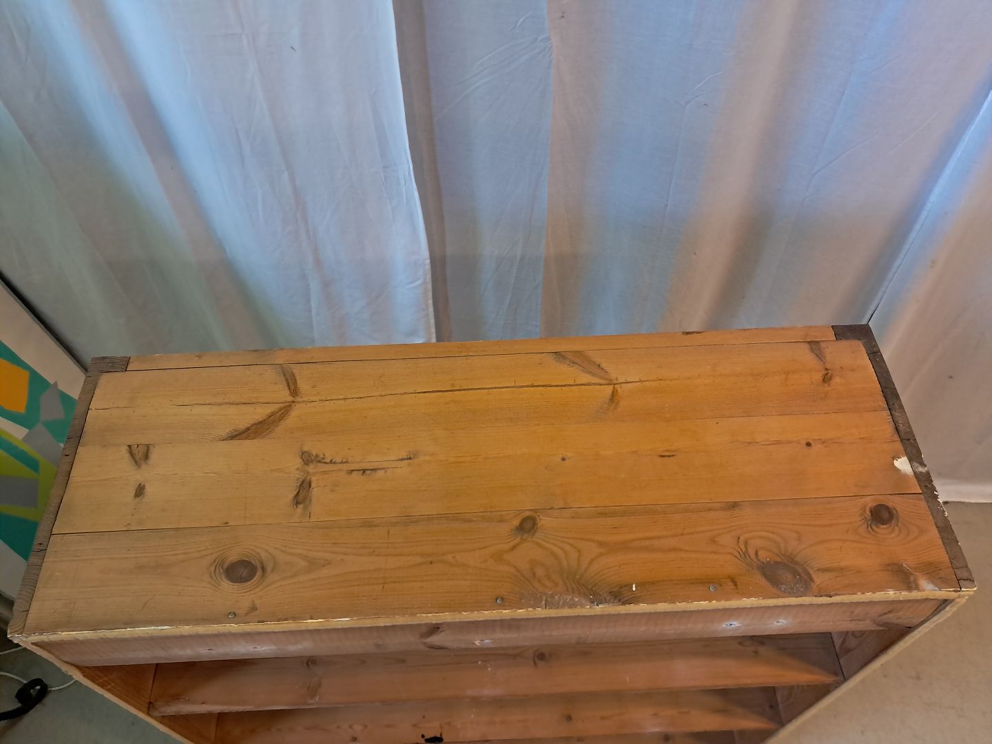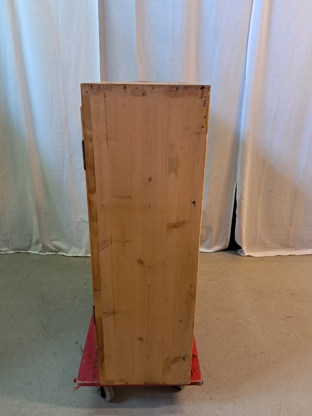 Gammelt køkkenskab i massivt fyrretræ, fra 1920erne. Det har brugsspor. Højde 100cm Bredde 90cm Dybde 32cm Emne nummer: 77414