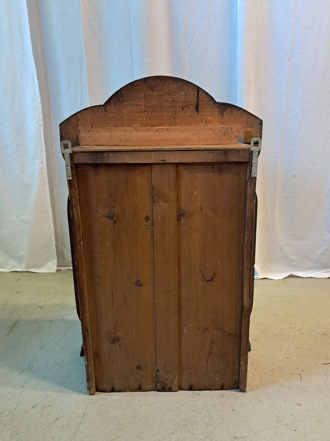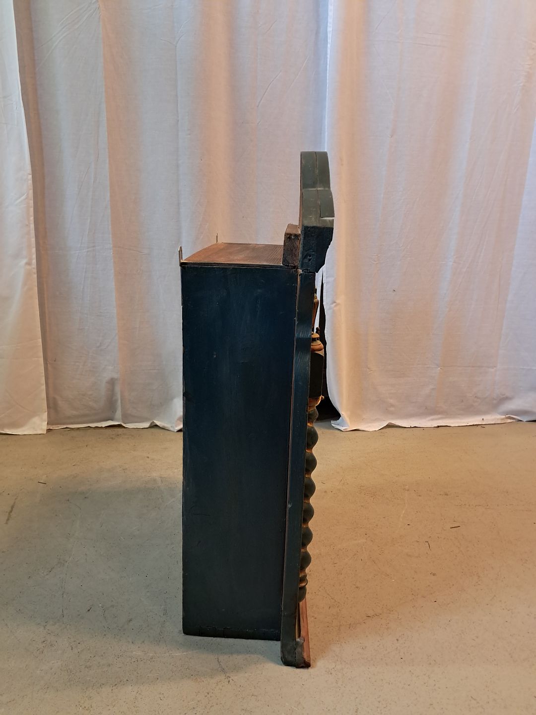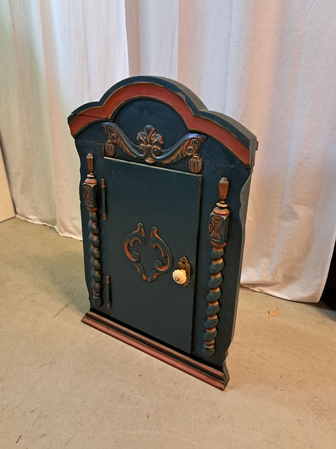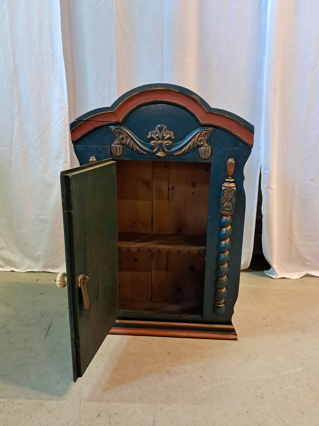 Malet hjørneskab fra 1940erne. Det har brugsspor. Højde 82cm Bredde 54cm Dybde 21cm Emne nummer: 77421