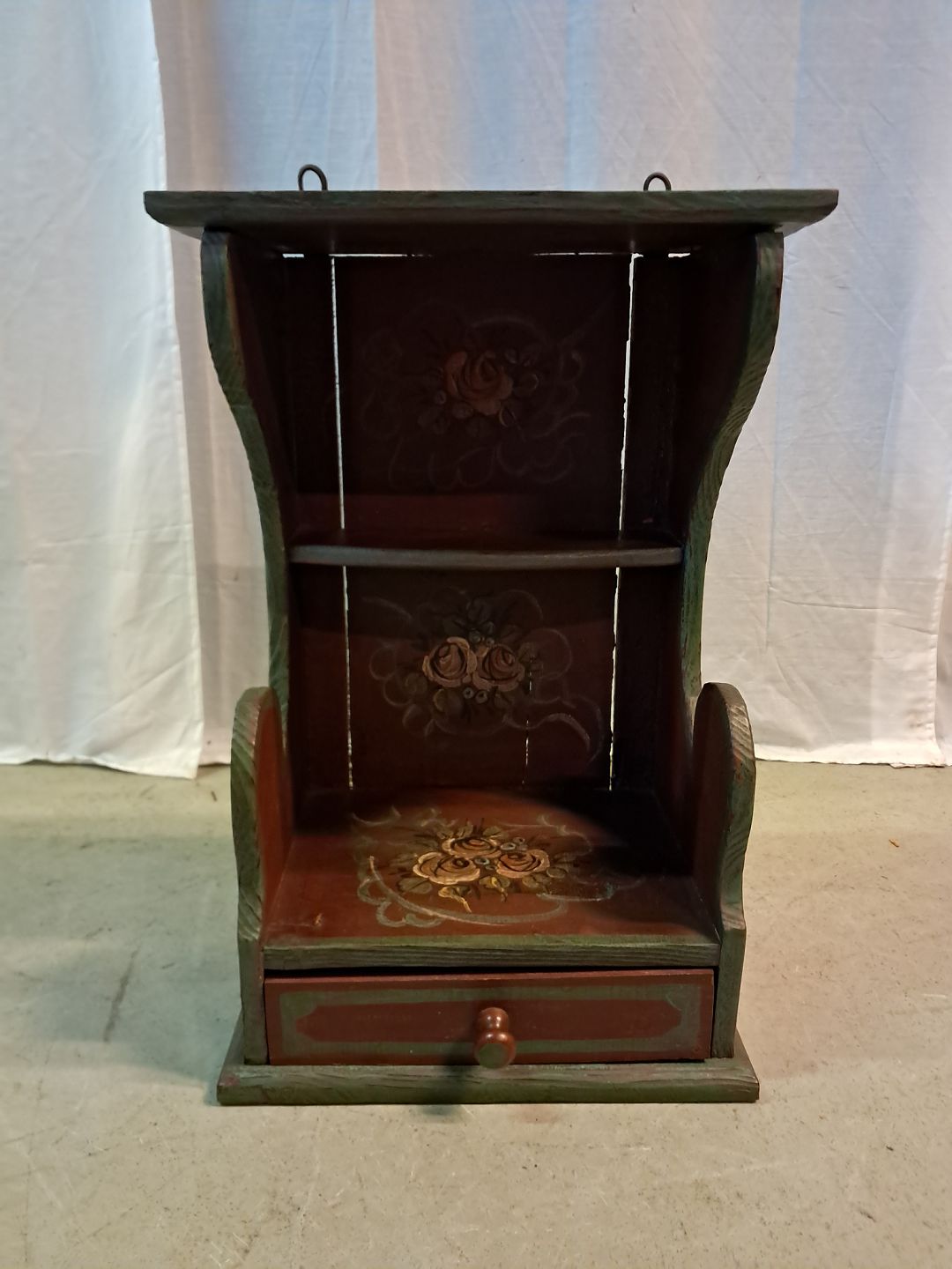Almuemalet reol fra 19+00erne. Den har brugsspor. Højde 58cm Bredde 37cm Dybde 27cm Emne nummer: 77443