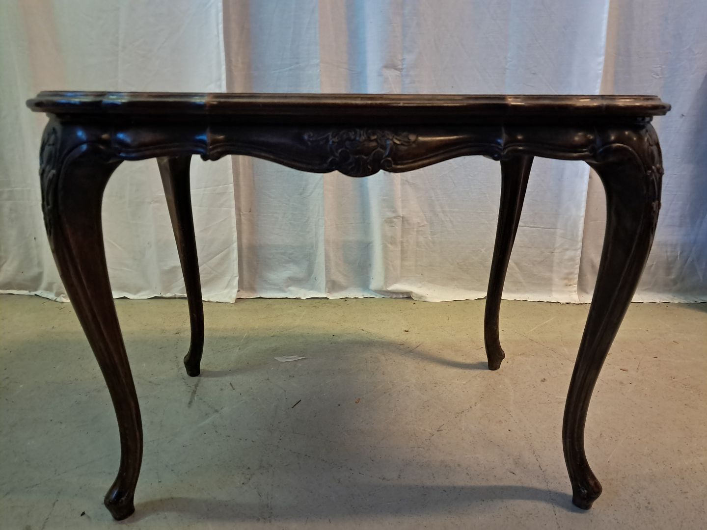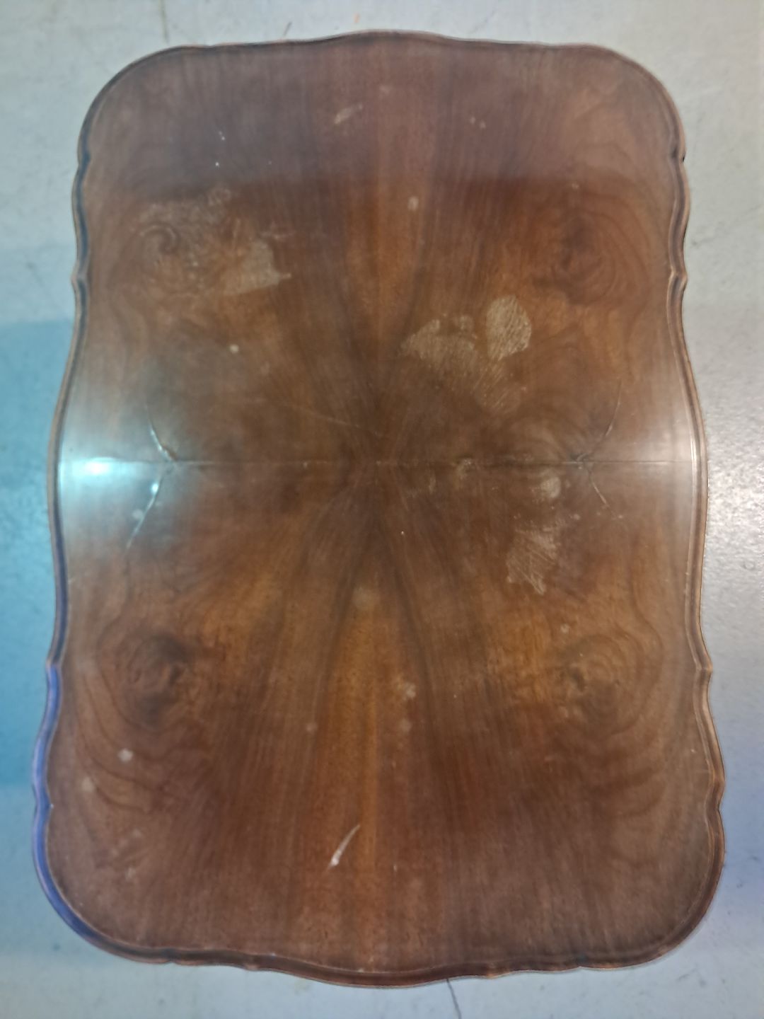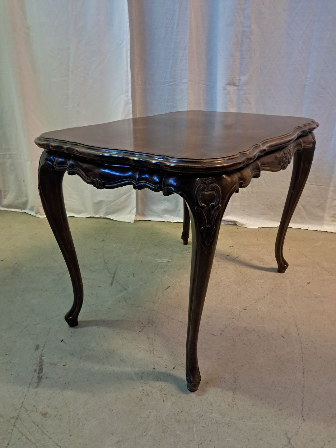 Sofabord i fineret nødetræ, fra 1950erne. Det har brugsspor på bordpladen. Højde 50cm Bredde 47cm Længde 70cm Emne nummer: 77493