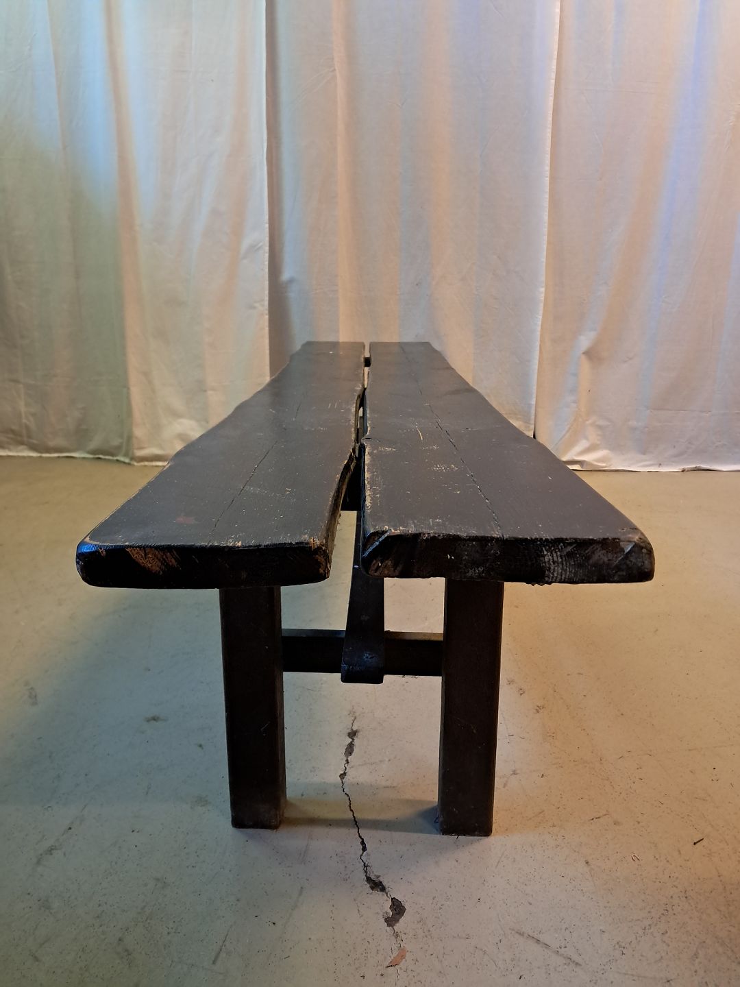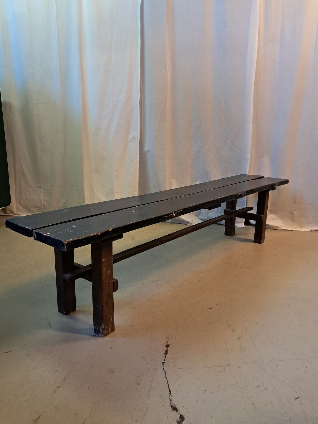 Malet bænk i massivt Fyrre og egetræ, fra 1950erne. Den har brugsspor. Højde 44cm Bredde 38cm Længde 195cm Emne nummer: 77527
