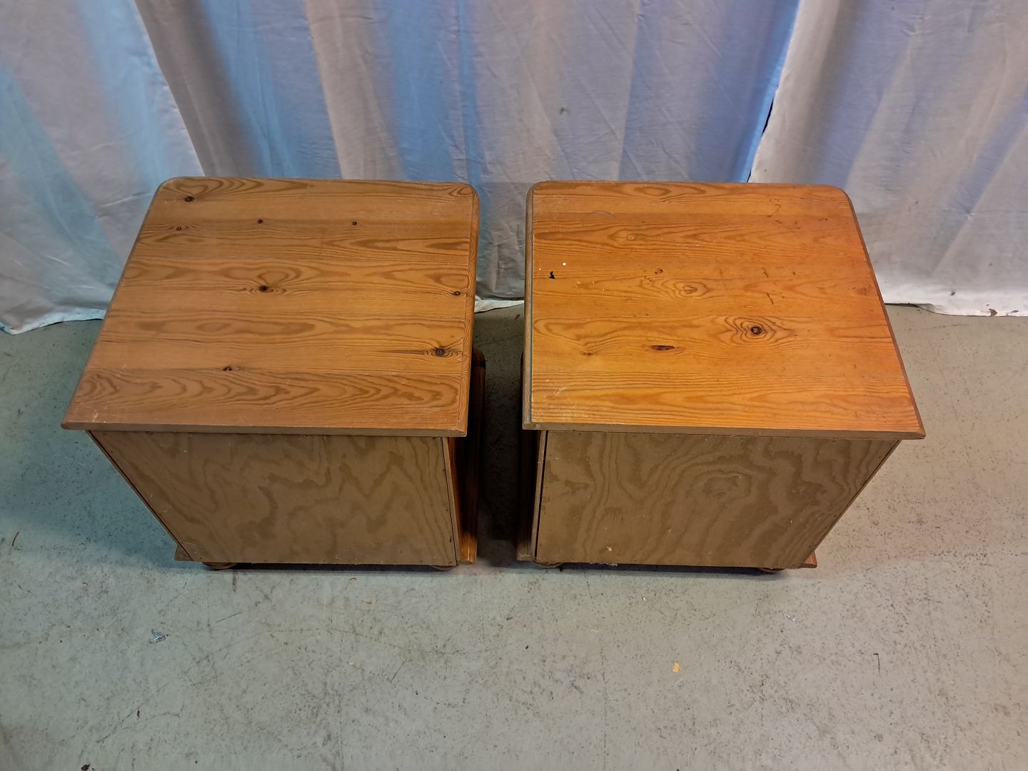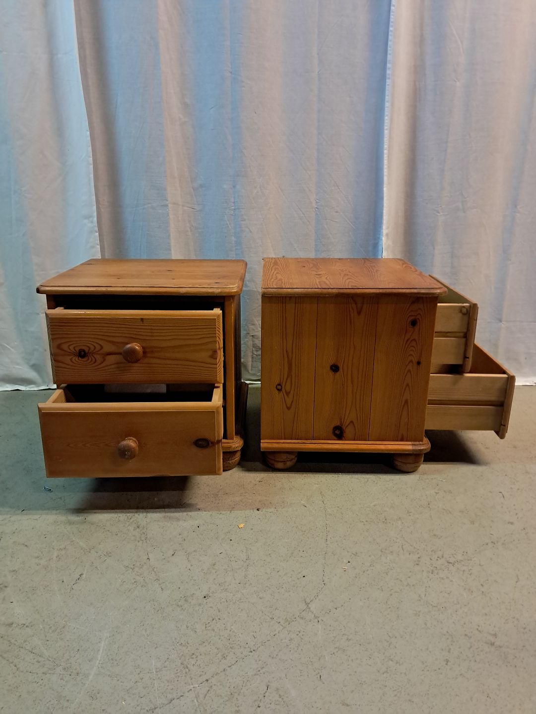 2 Små kommoder i massivt fyrretræ, fra 1980erne. De har brugsspor. Højde 45cm Bredde 44cm Dybde 40cm Emne nummer: 77603
