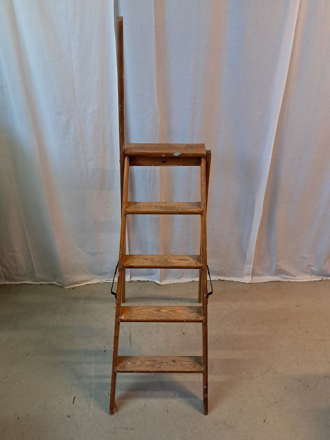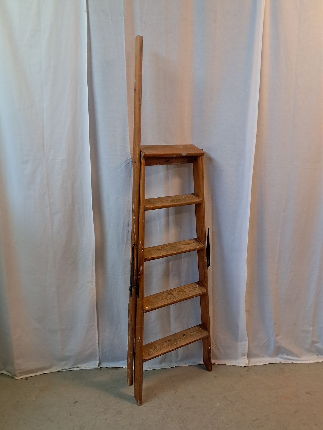 Stige i massivt fyrretræ, fra 1940erne. Den har brugsspor. Højde 168cm Højde på øverste trin 119cm Emne nummer: 77653
