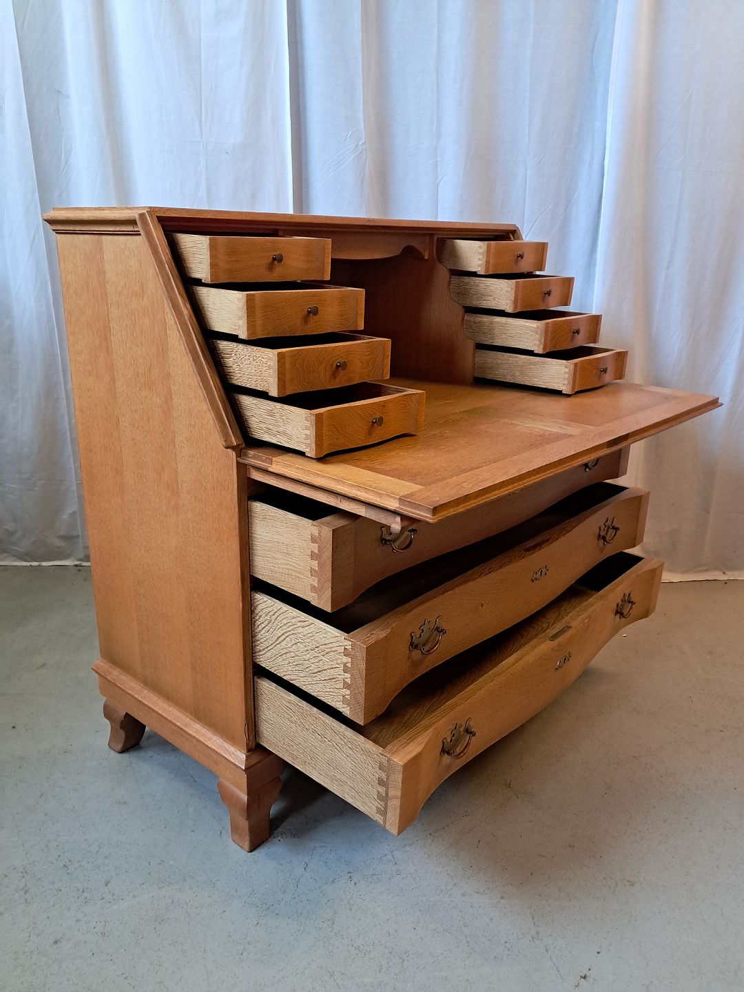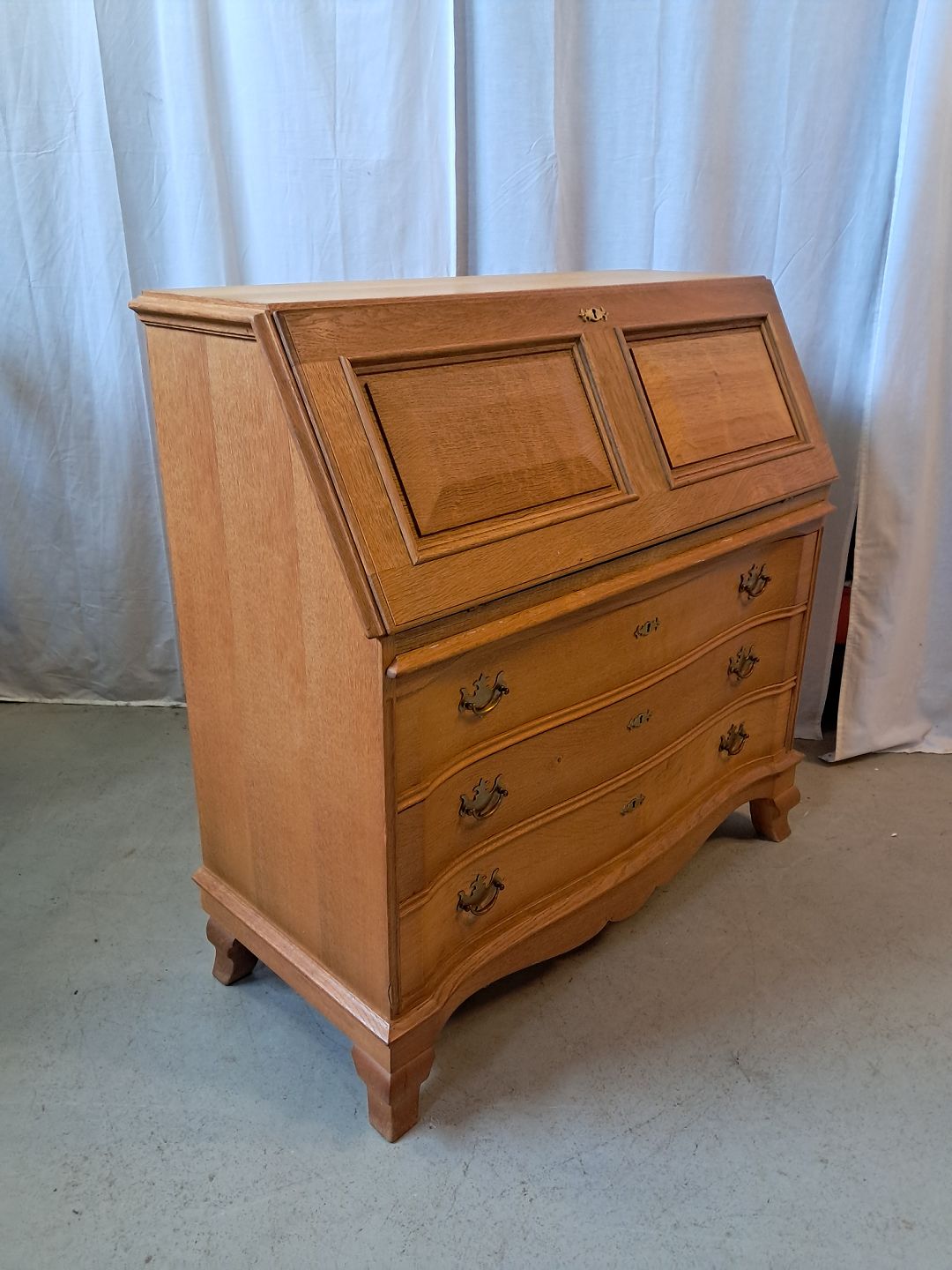 Chatol i fineret egetræ, fra 1980erne. Det har brugsspor og kommer fra et ryger hjem. Højde 104cm Bredde 104cm Dybde 45cm Emne nummer: 77785