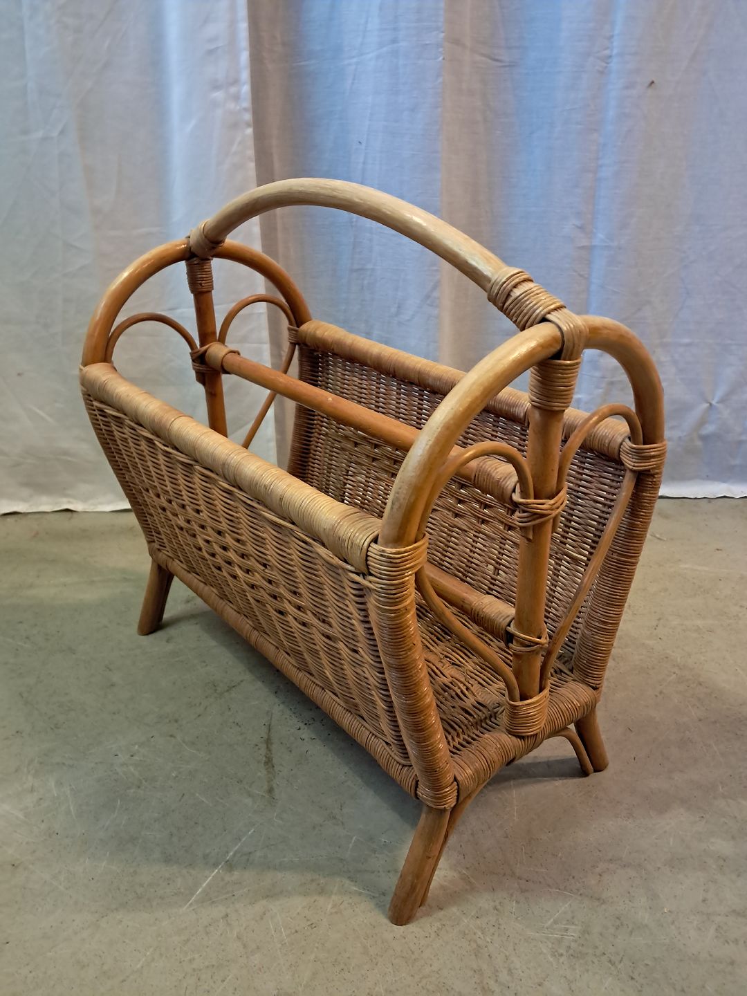 Avisholder i bambus, fra 1990erne. Den har brugsspor. Højde 48cm Bredde 27cm Længde 47cm Emne nummer: 77823