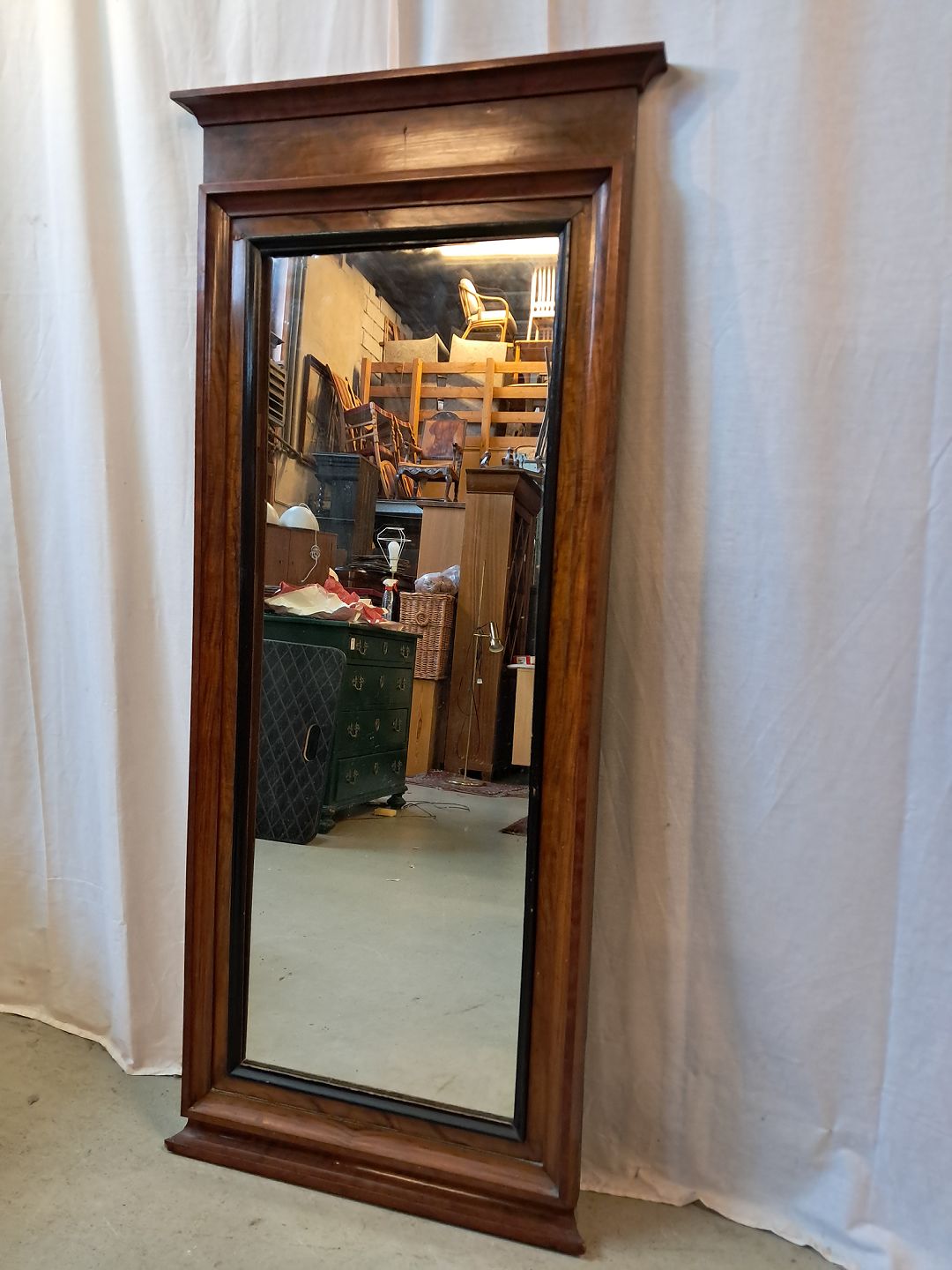 Spejl i fineret mahogni, fra 1910erne. Det har brugsspor. Højden 148cm Bredde 65cm Emne nummer: 77894
