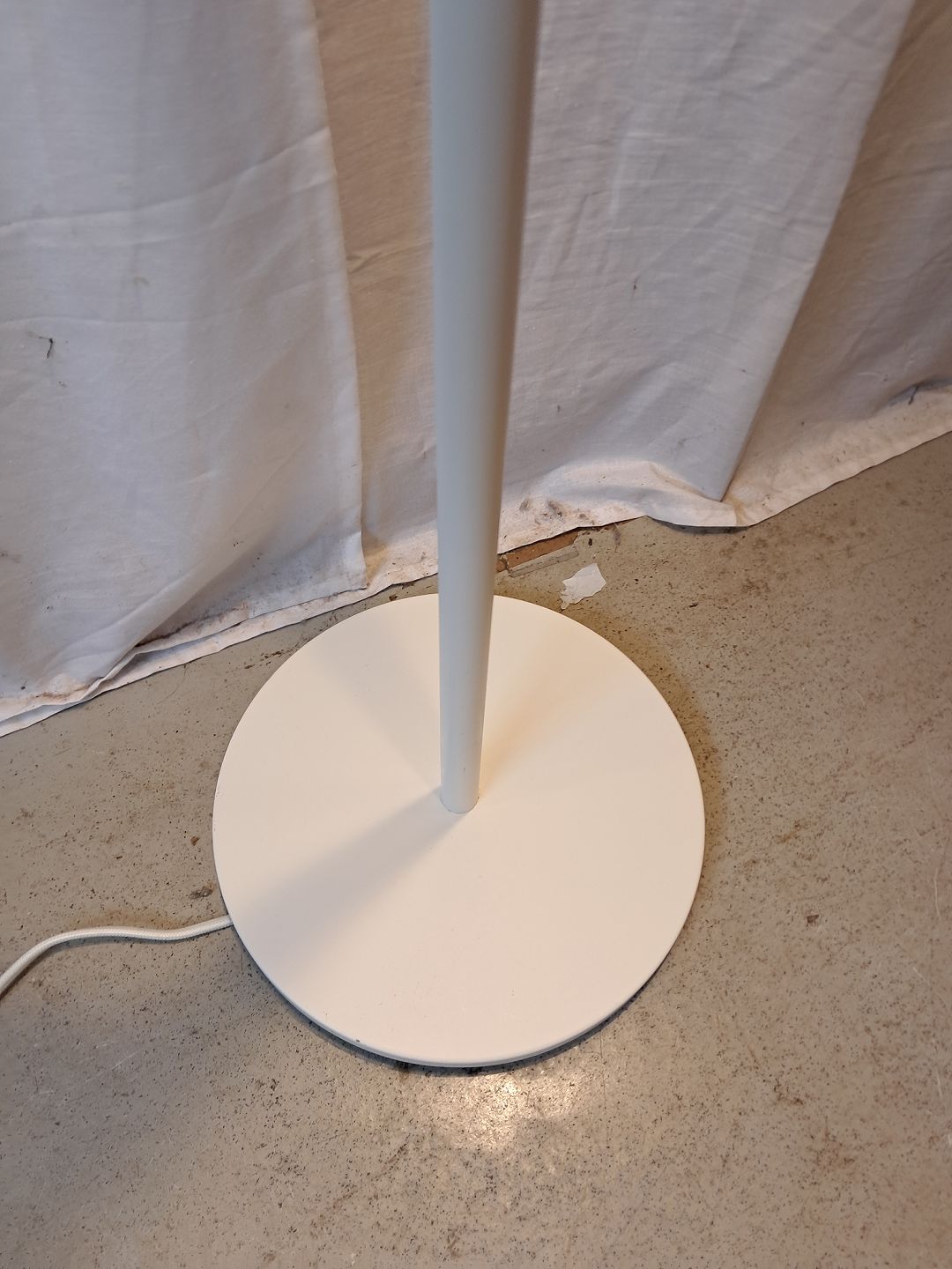 Gulvlampe i malet metal, af nyere dato. Den har småbrugsspor. Højde 159cm Diameter på fod 26cm Emne nummer: 77906