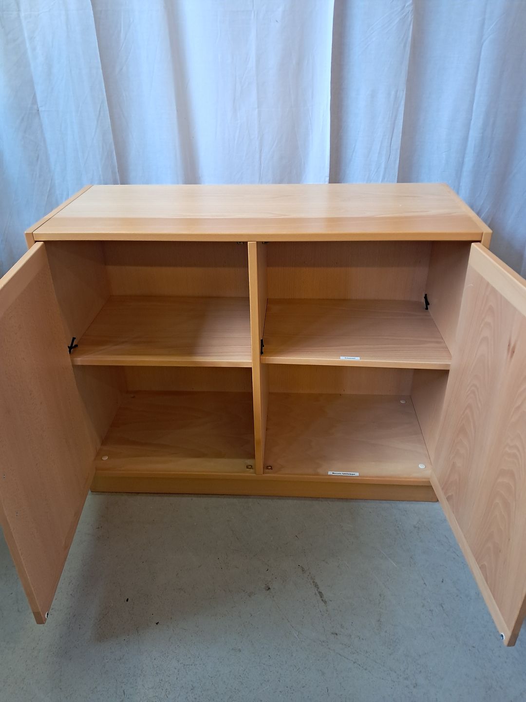 Skab i fineret bøgetræ, fra 1990erne. Det har brugsspor. Højde 81cm Bredde 102cm Dybde 43cm Emne nummer: 77910