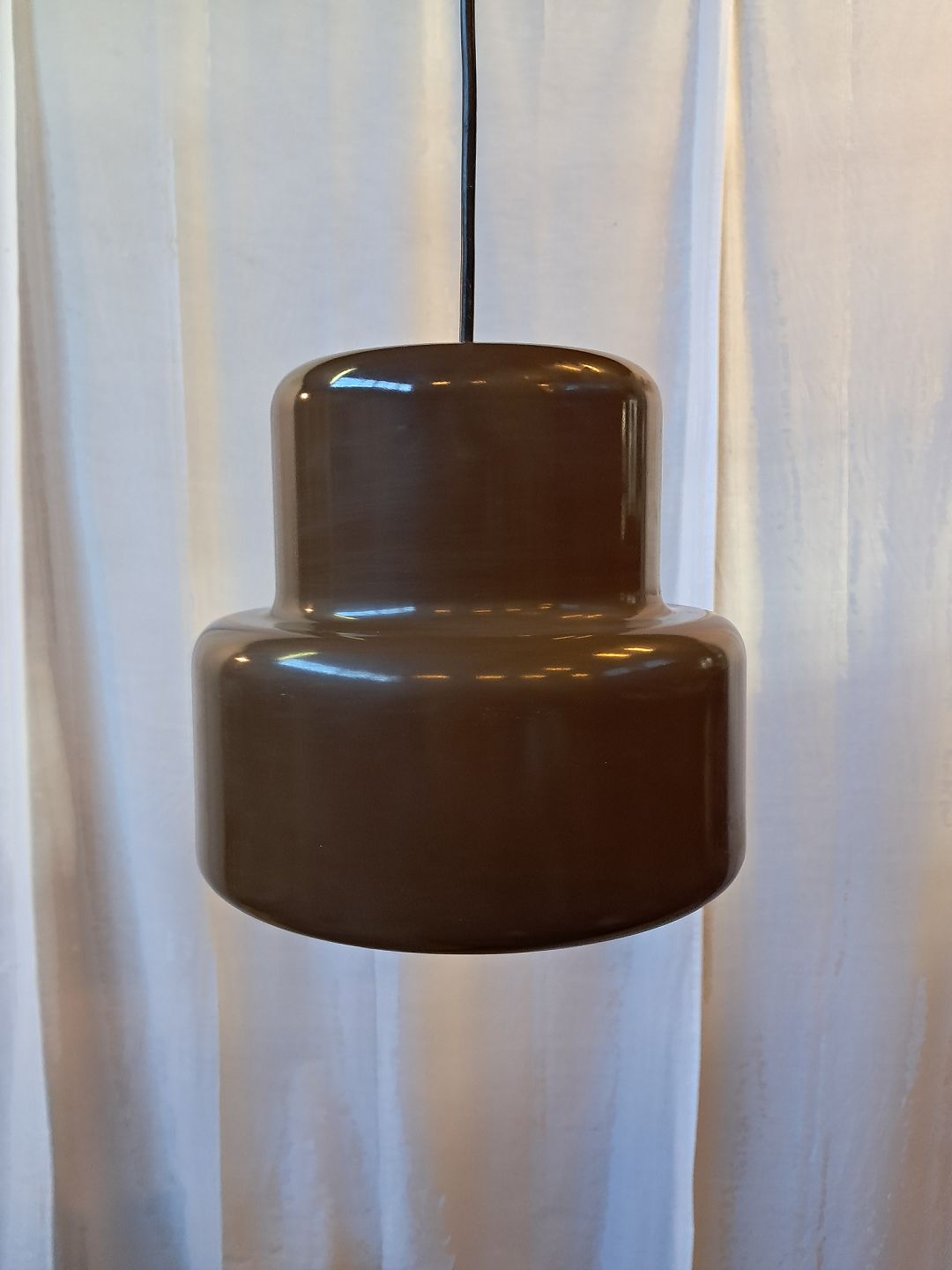Fog & Mørup mini poker pendel, designet af Jo Hammerborg, fra 1970erne. Den er i en pæn brugt stand, uden buler. Højde 19cm Diameter 20cm Emne nummer: 77946