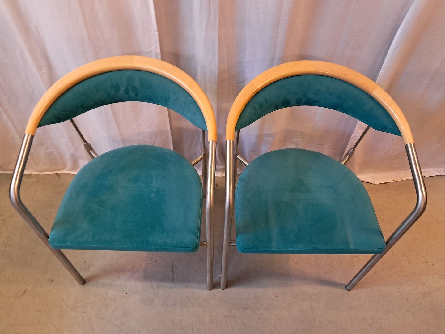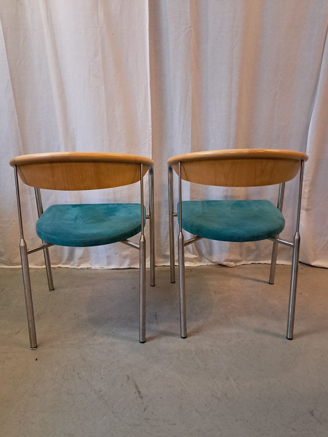 2 Chairman stole af Henrik Tengler i metal med alcantarabetræk, fra 2010erne. De har brugsspor. Ryghøjde 76cm Sædehøjde 44cm Emne nummer: 77956