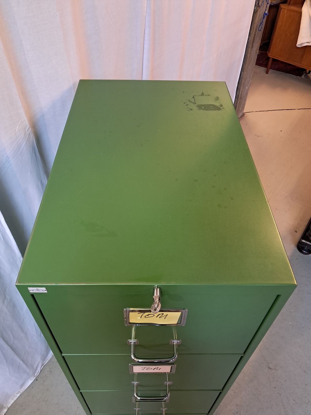 Malet metal arkivskab, fra 1970erne. Det har brugsspor. Højde 132cm Bredde 47cm Dybde 74cm Emne nummer: 77959