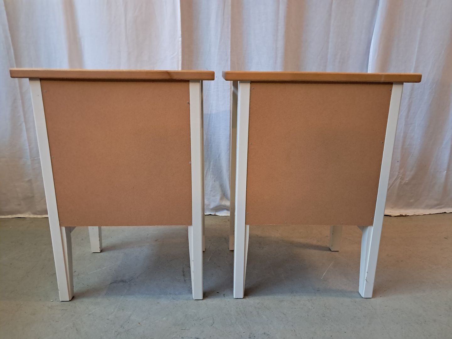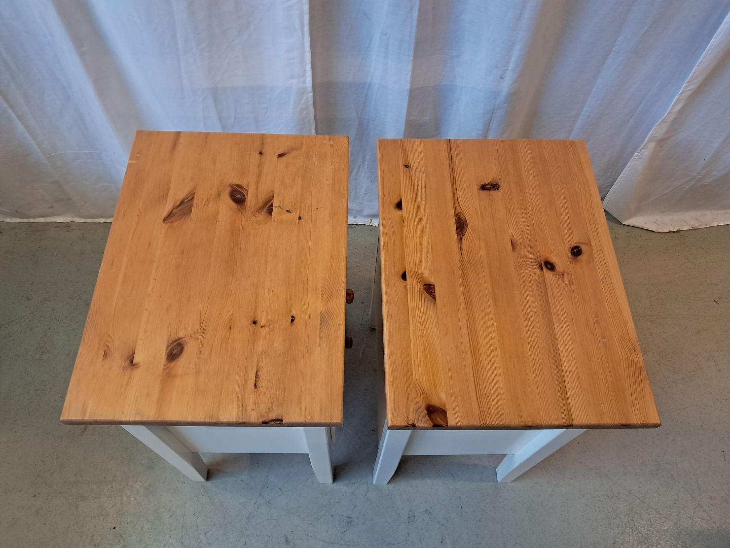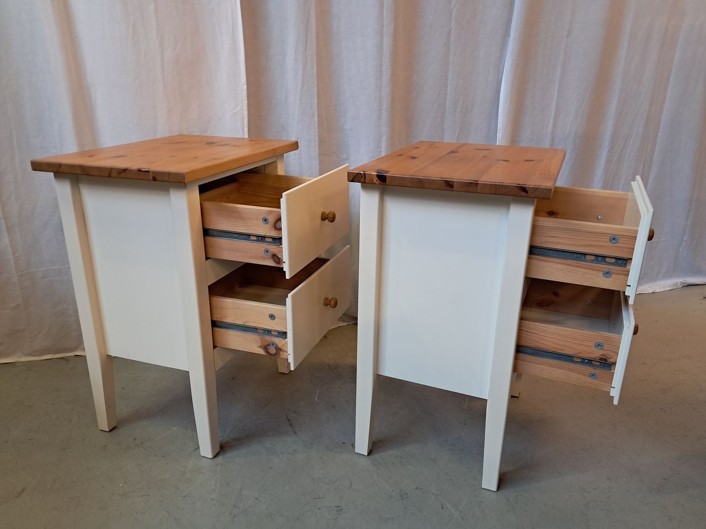 2 Kommoder i fyrretræ og laminat, af nyere dato. De har lidt brugsspor. Højde 66cm Bredde 49cm Dybde 36cm Emne nummer: 77960