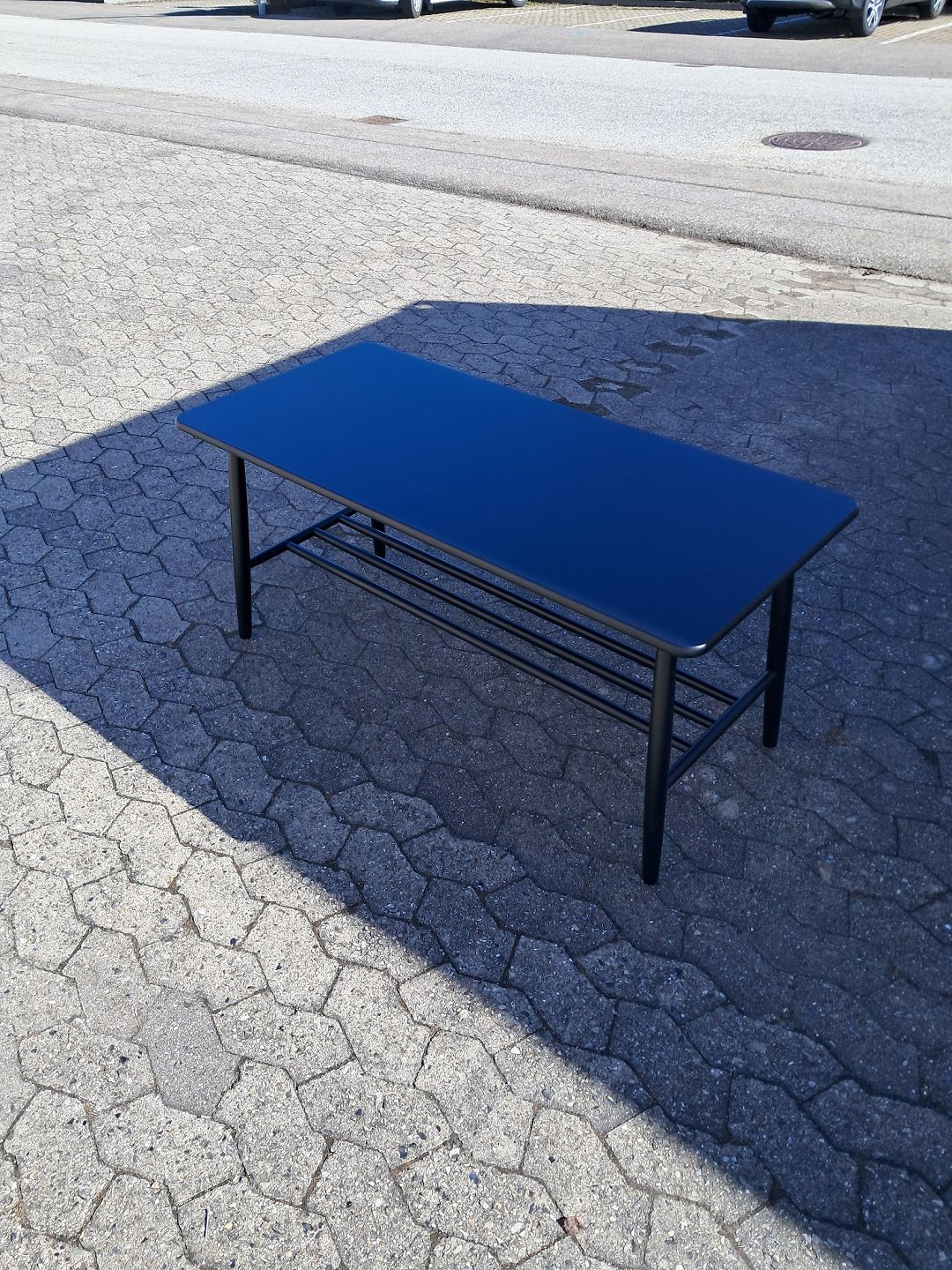 Sort malet FDB sofabord, model nr. D20. Det har små brugsspor. Højde 56cm Bredde 55cm Længde 120cm Emne nummer: 77971