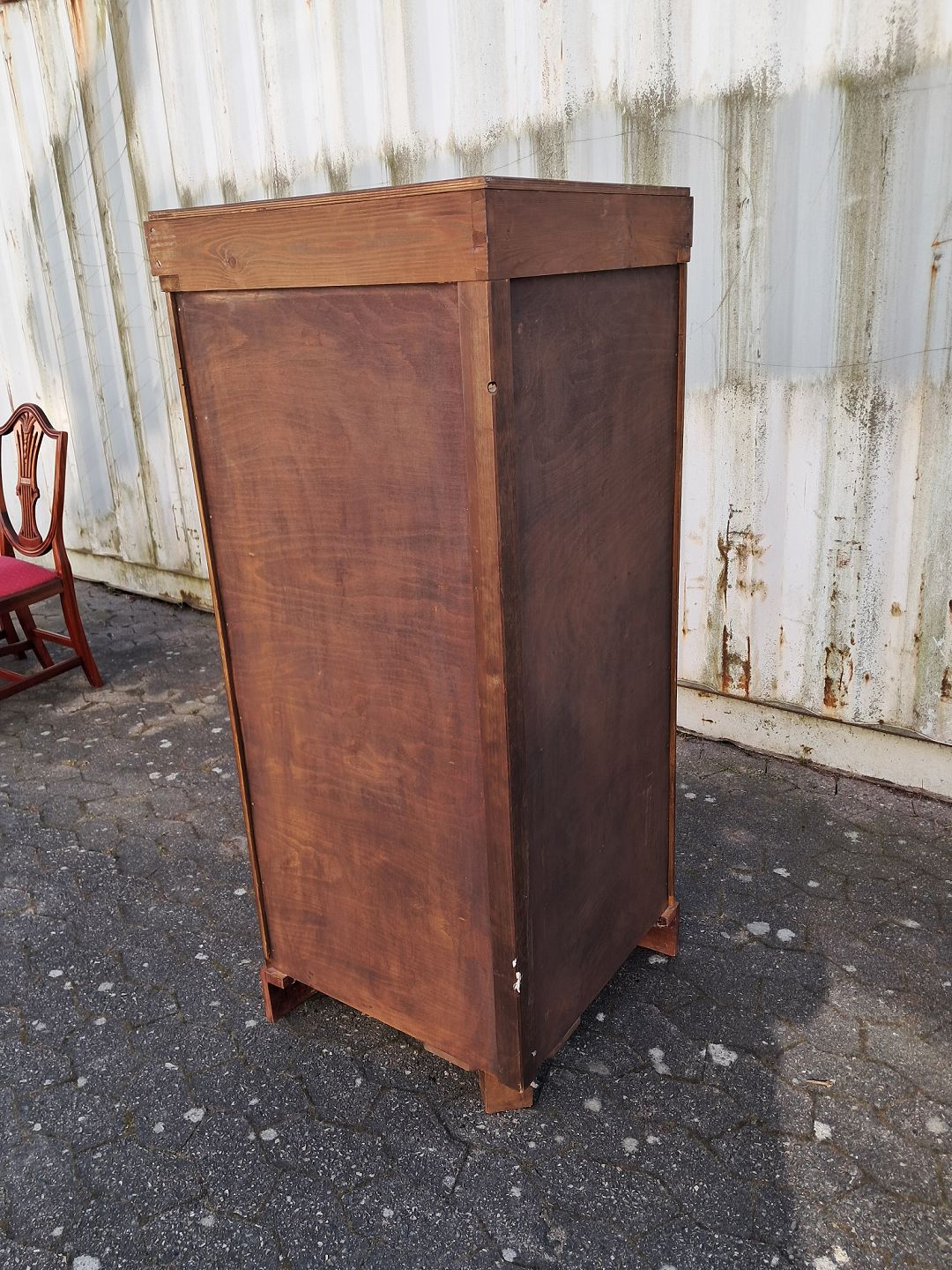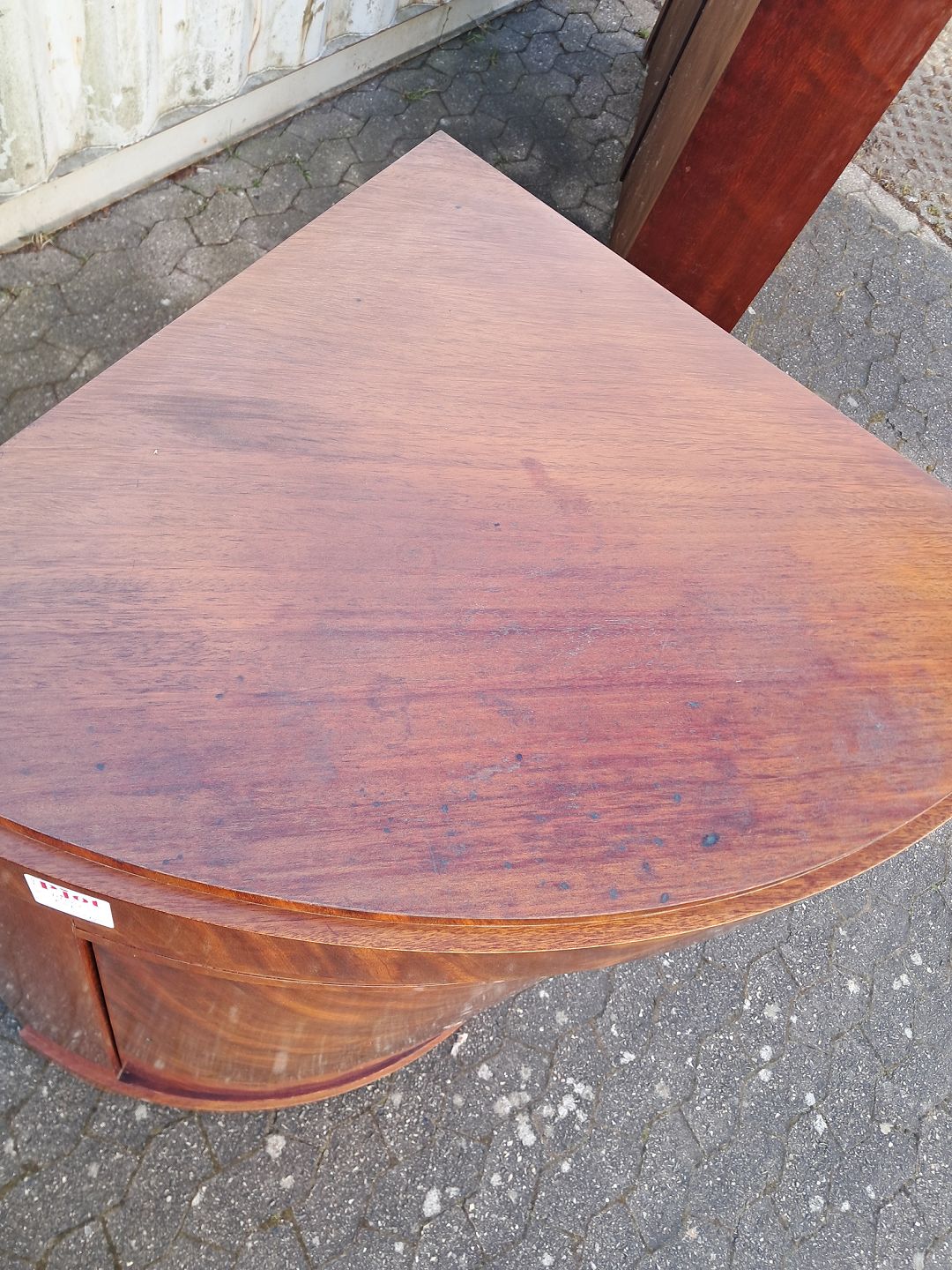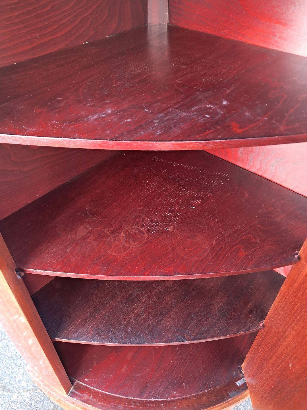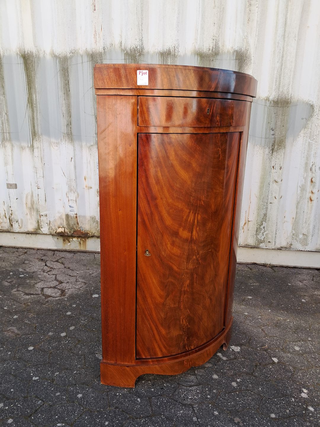 Hjørneskab i fineret mahogni, fra 1910erne. Det har brugsspor. Højde 140cm Bredde 79cm Dybder 57cm Emne nummer: 77988
