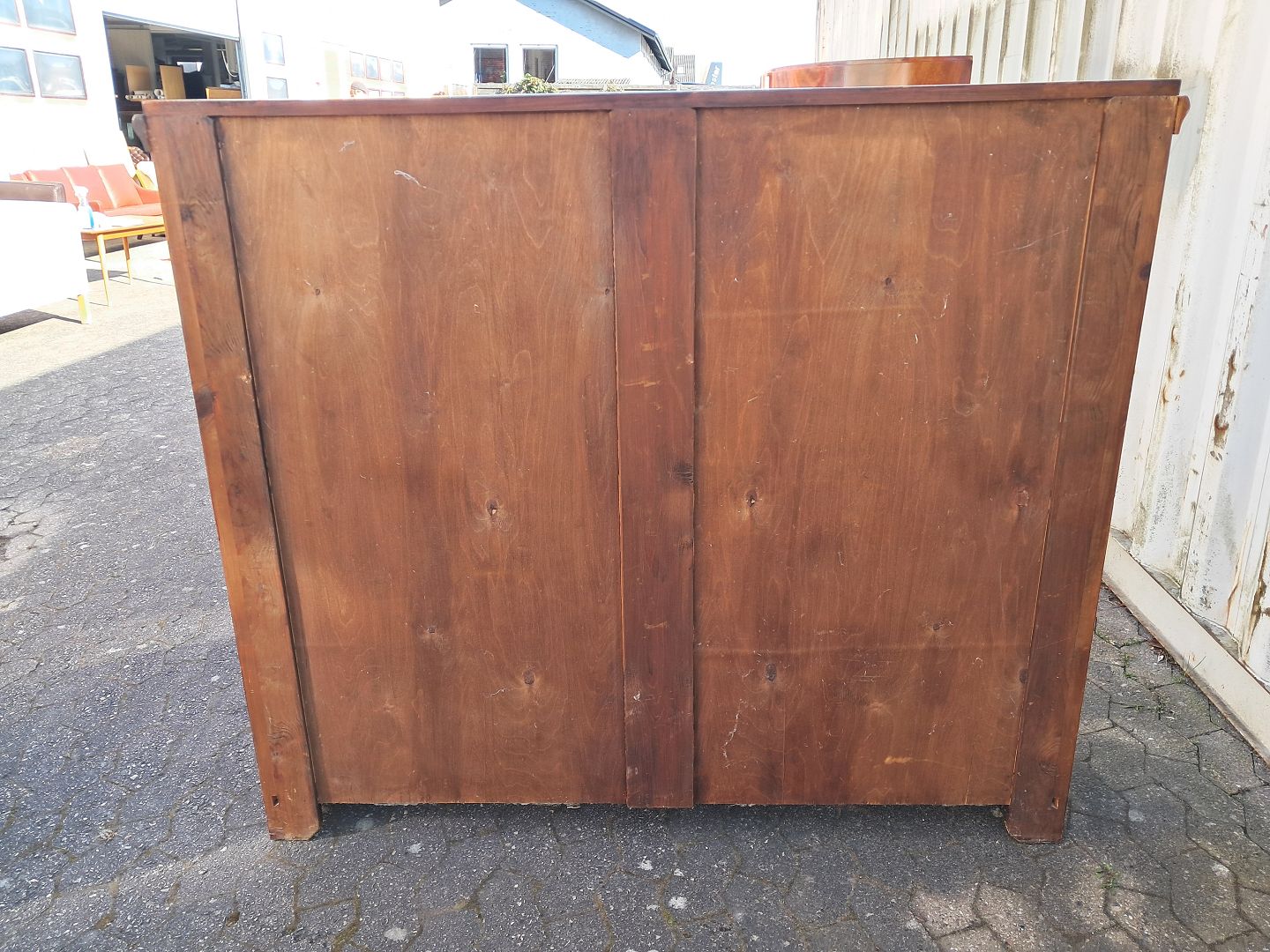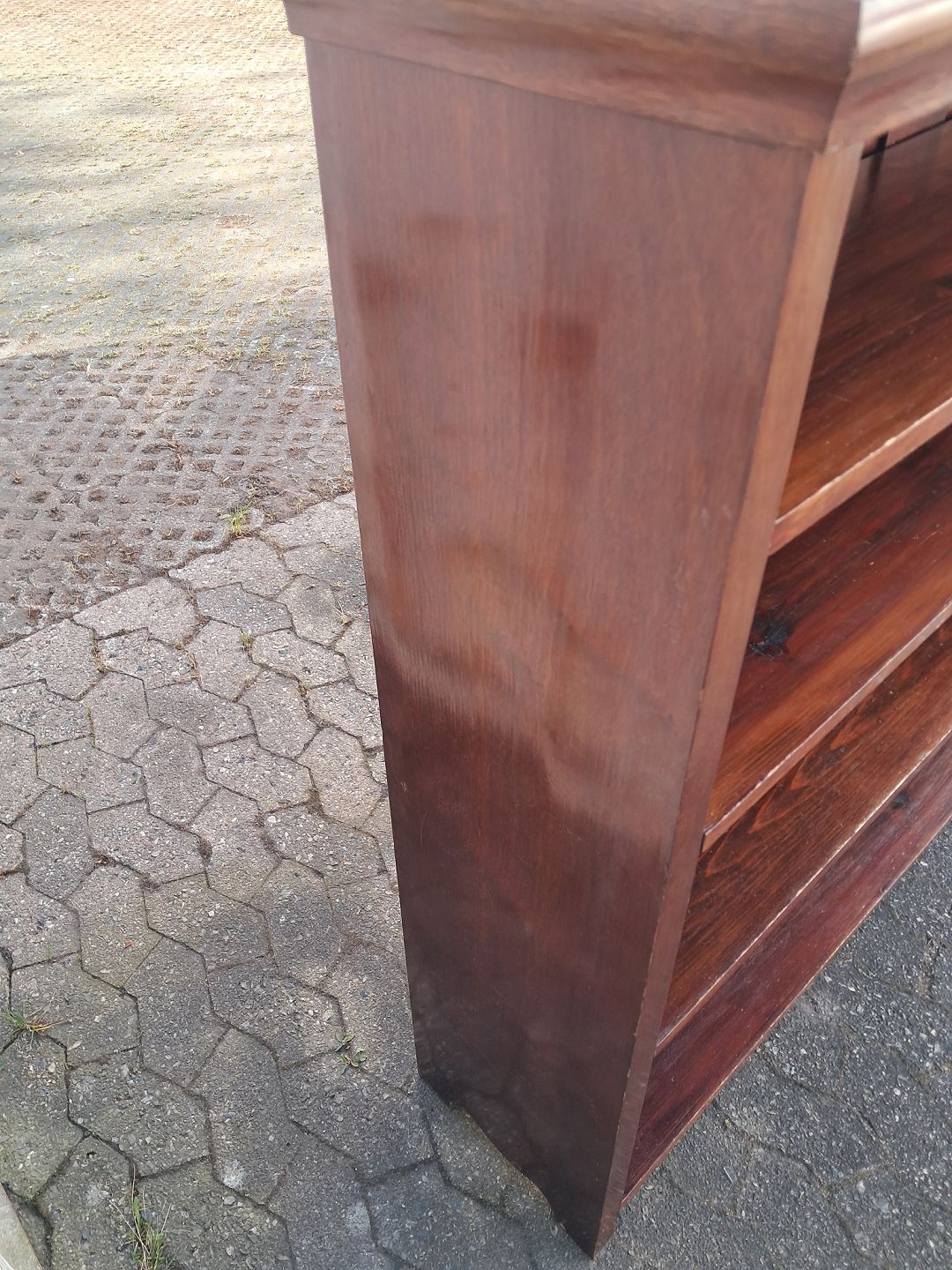Reol i fineret mahogni, fra 1910erne. Den har brugsspor. Højde 140cm Bredde 147cm Dybde 32cm Emne nummer: 77989